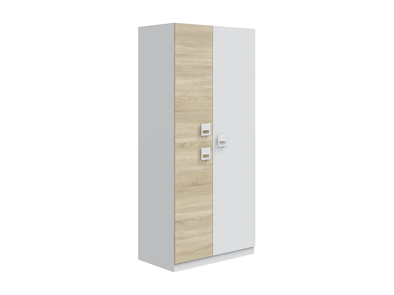 Mueble alto 80x34x171cm con 2 puertas, cuerpo en chapa de madera imitación madera blanca con tiradores de acero