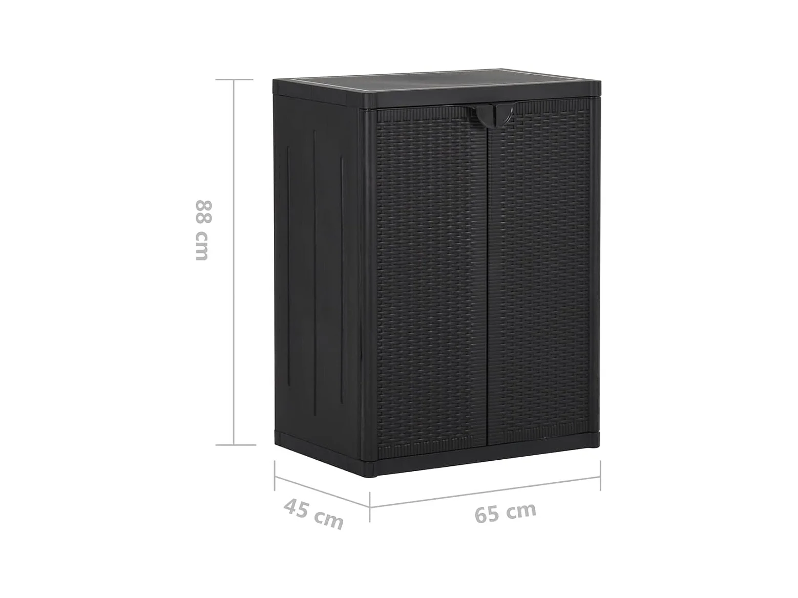Armario de almacenaje de jardín PP ratán negro 65x45x88 cm