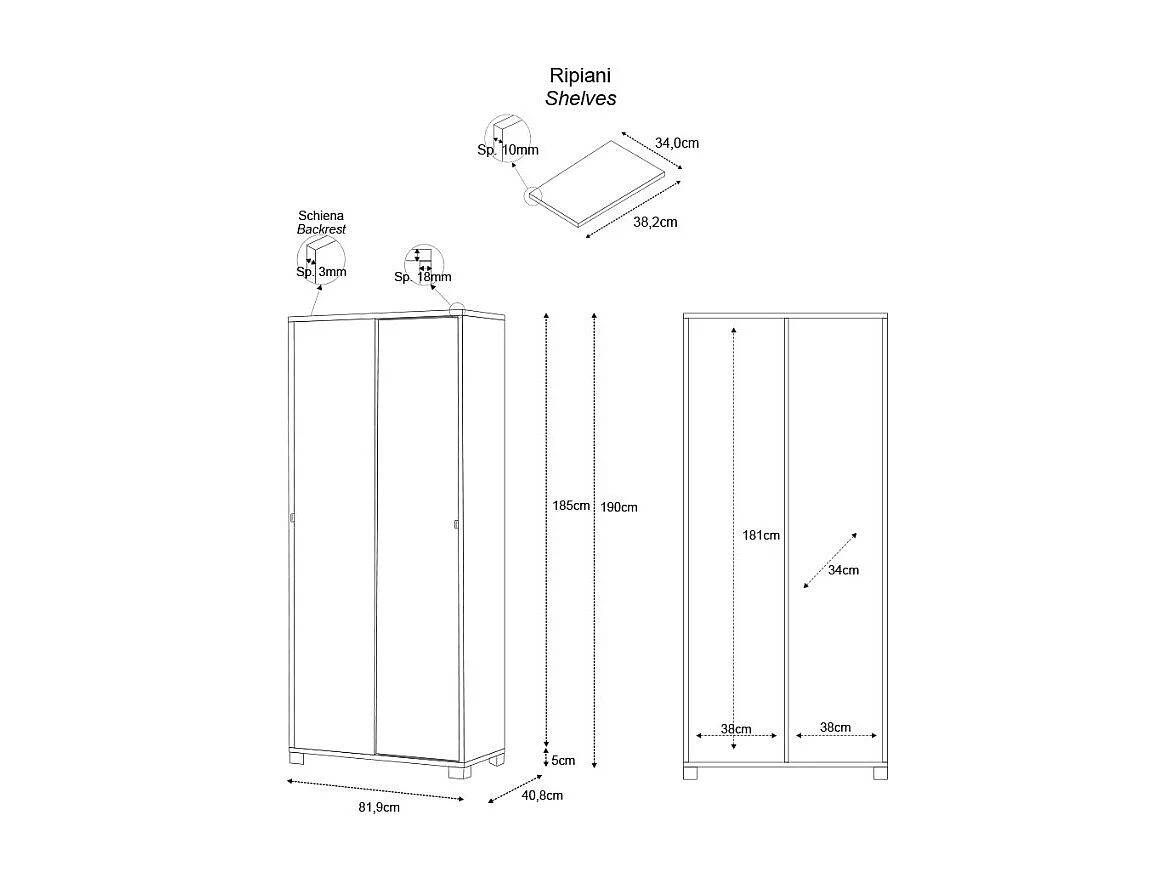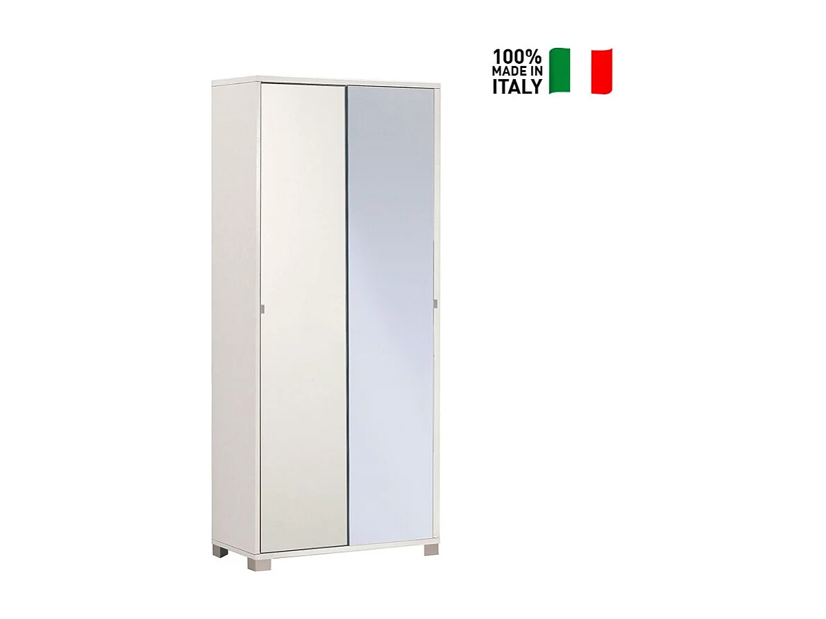 Armario de almacenamiento 2 puertas correderas de espejo 8 baldas Livo - Blanco