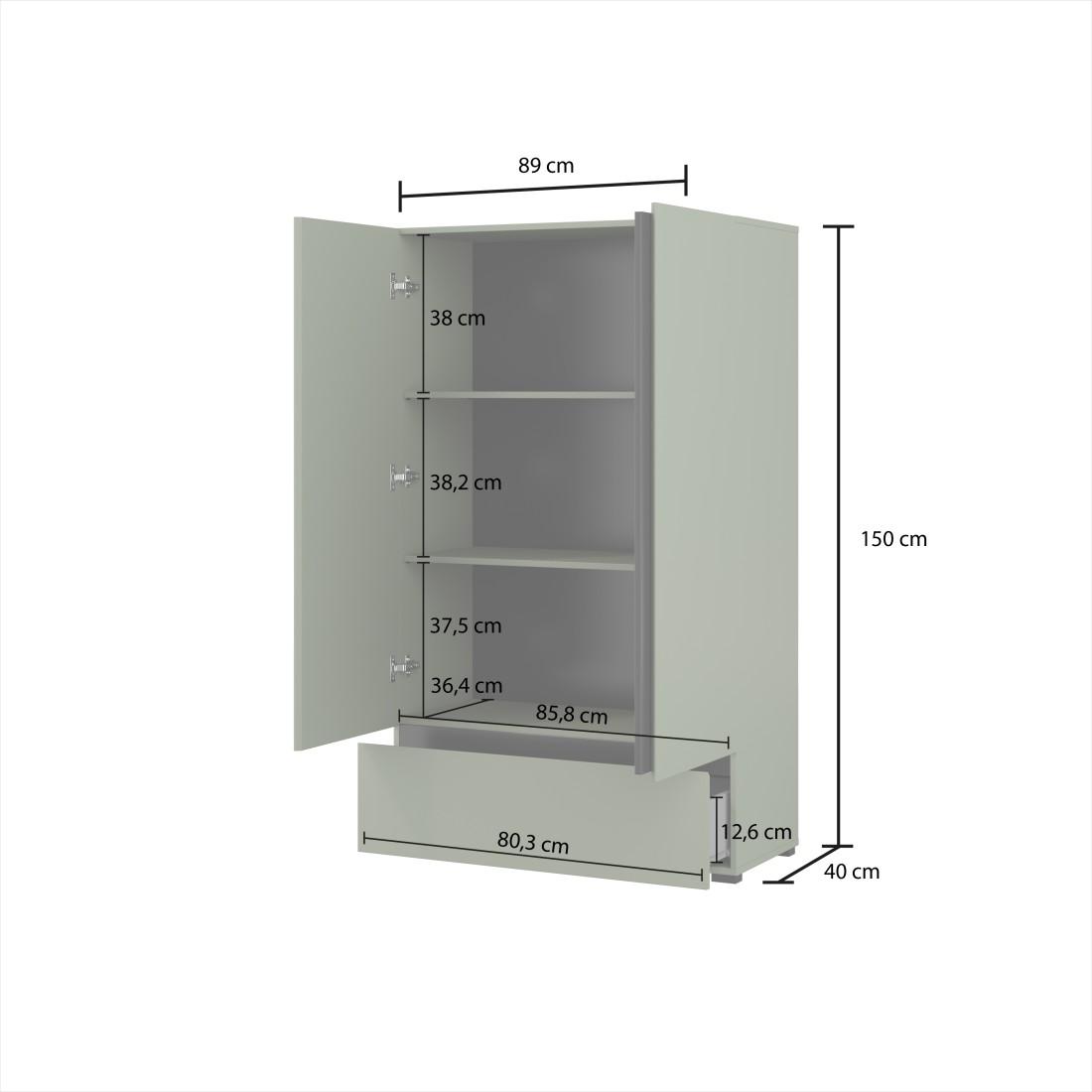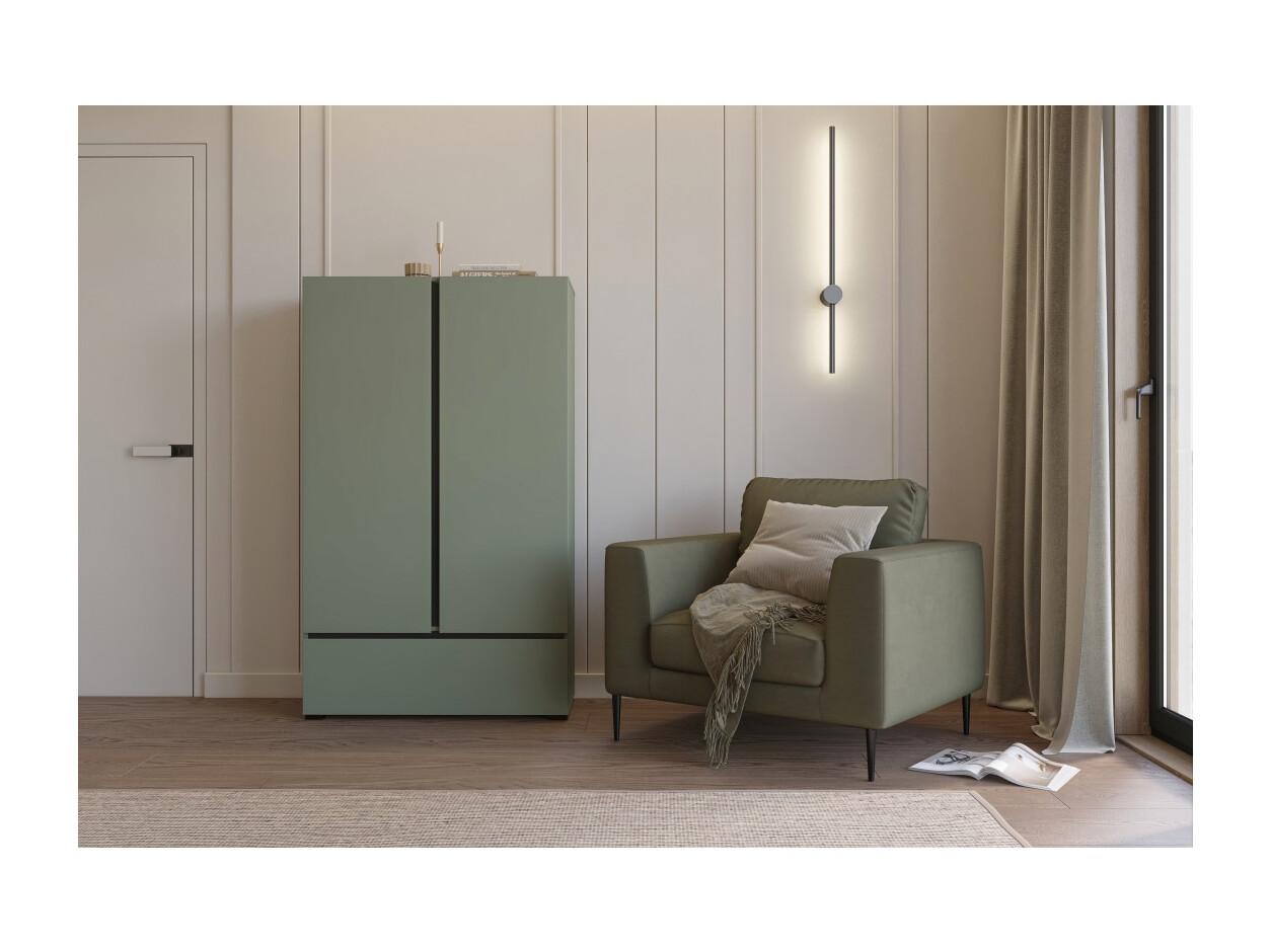 Armario de almacenamiento HAVANA - 2 puertas 1 cajón - Color verde salvia y negro - Diseño moderno y compacto