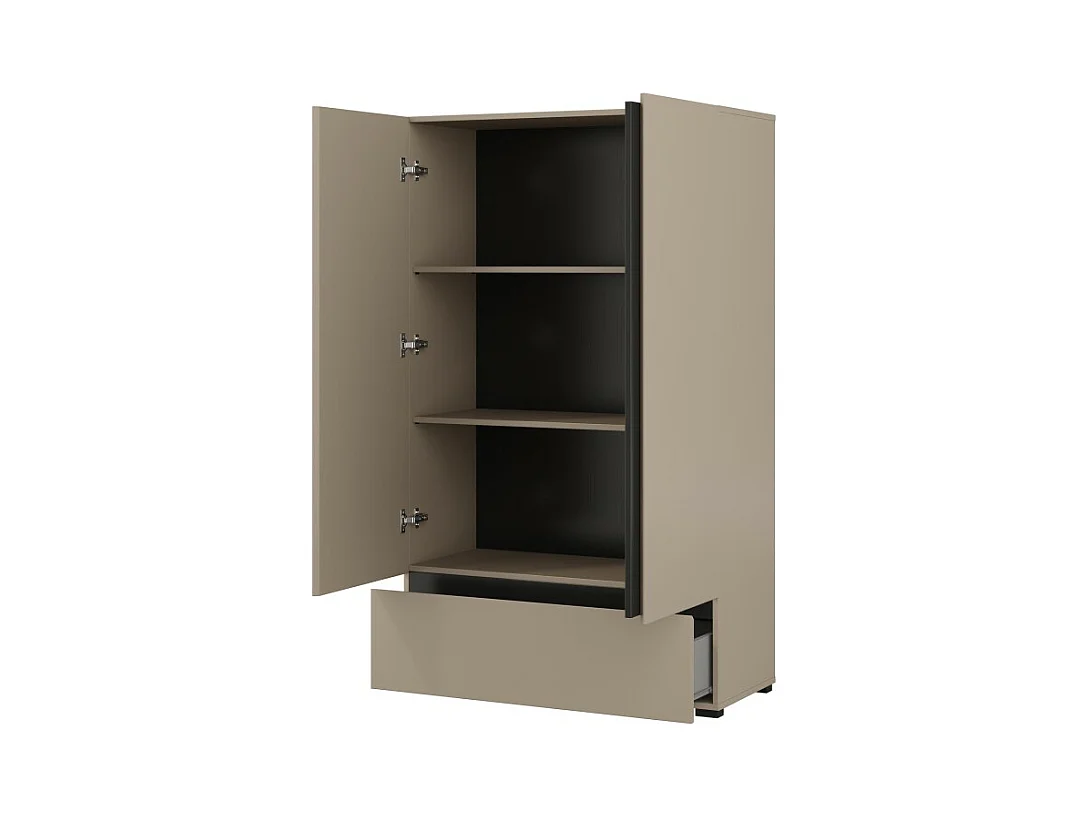 Armario de almacenamiento HAVANA beige y negro 2 puertas 1 cajón – Elegancia discreta y ahorro de espacio