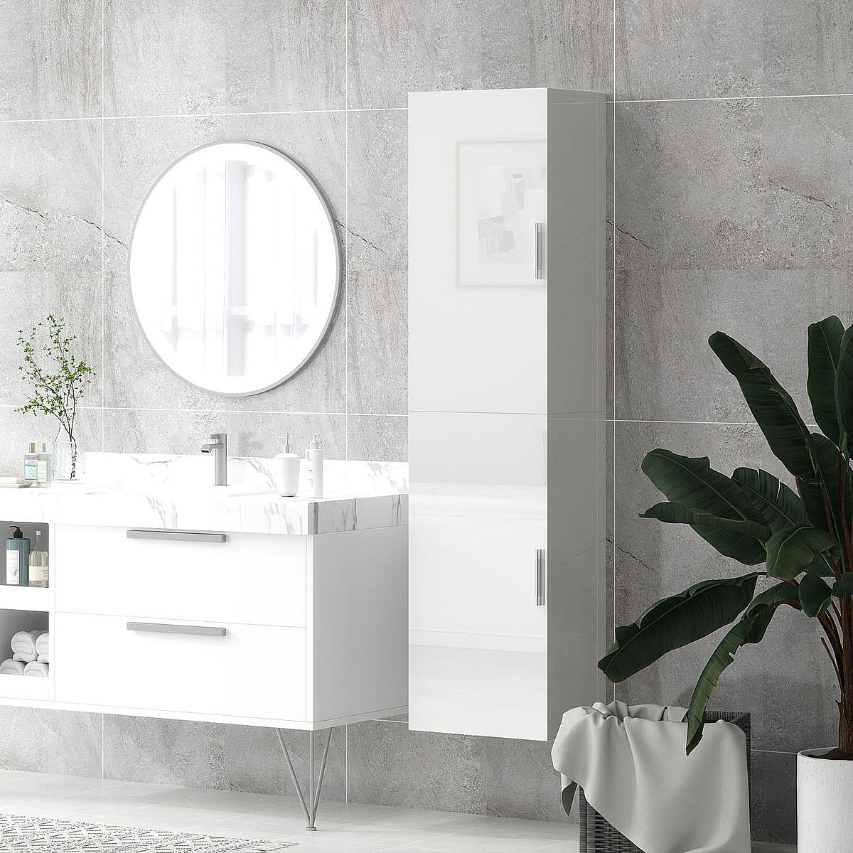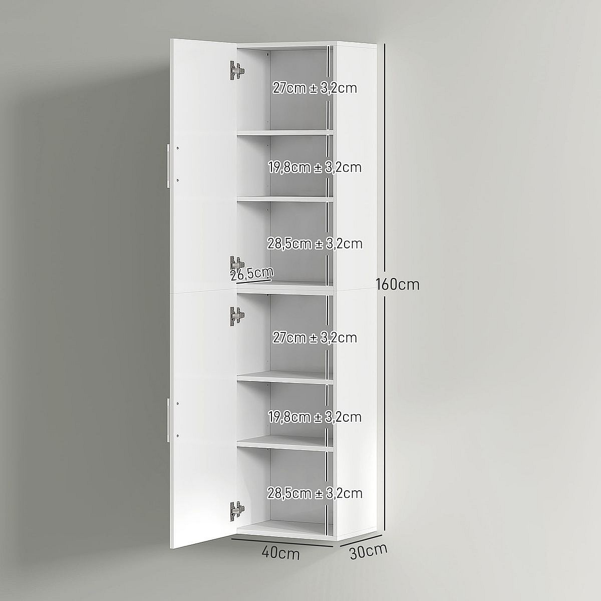 Mejora el almacenamiento de tu baño con la columna alta Armenia de Homcom, diseñada para aprovechar al máximo el espacio disponible. Este armario de pared, acabado en blanco de alto brillo, combina funcionalidad y estilo para mantener tus productos de higiene organizados y siempre accesibles. Cuenta con dos compartimentos independientes, cada uno con tres estantes, de los cuales dos son ajustables para adaptarse a objetos de diferentes tamaños. Su montaje en pared libera espacio en el suelo, facilita la limpieza y protege tus pertenencias de la humedad. Ideal para baños modernos que buscan orden y elegancia en un solo mueble.