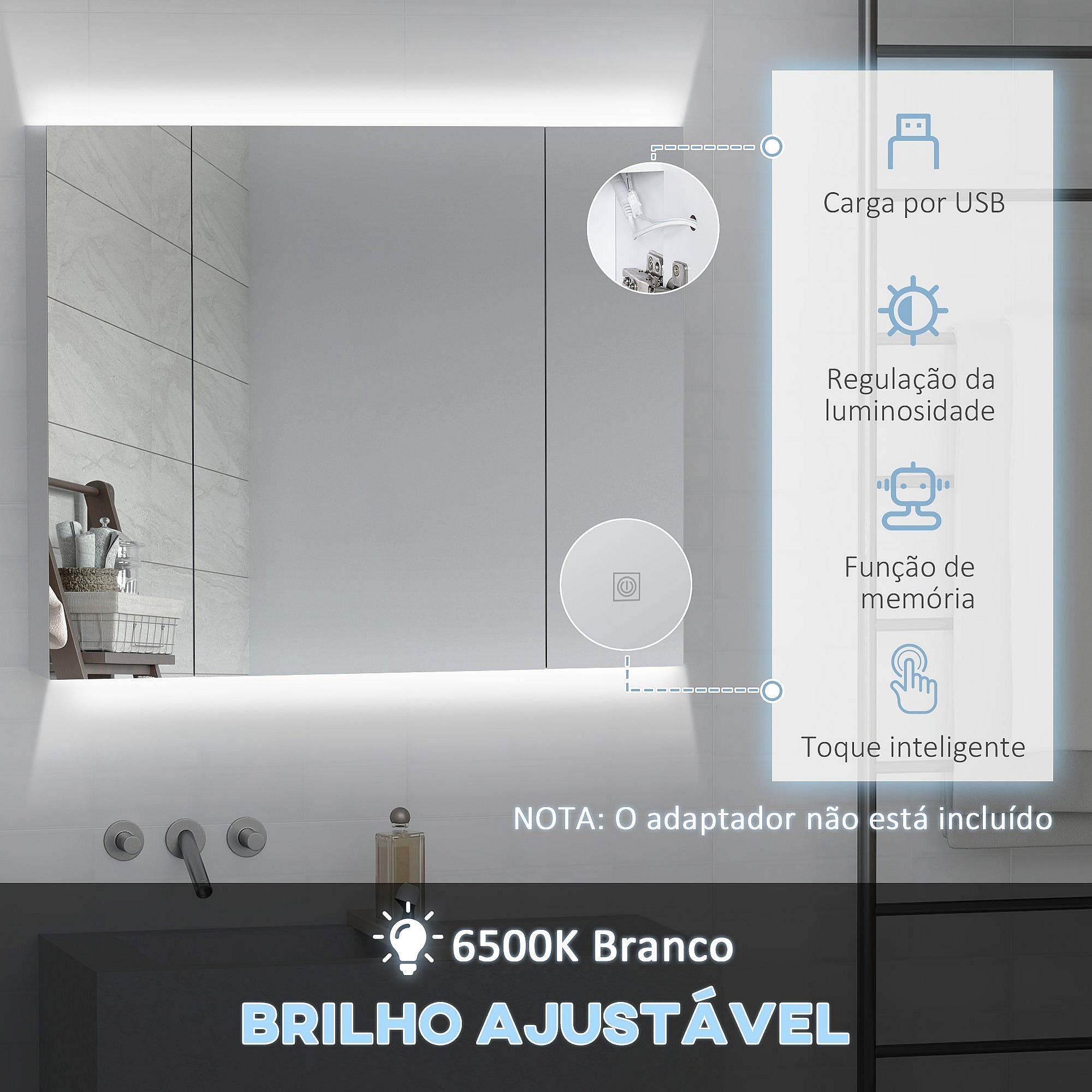 Armario con espejo de pared para baño LED CHABUNCO 60 cm 60 cm Blanco