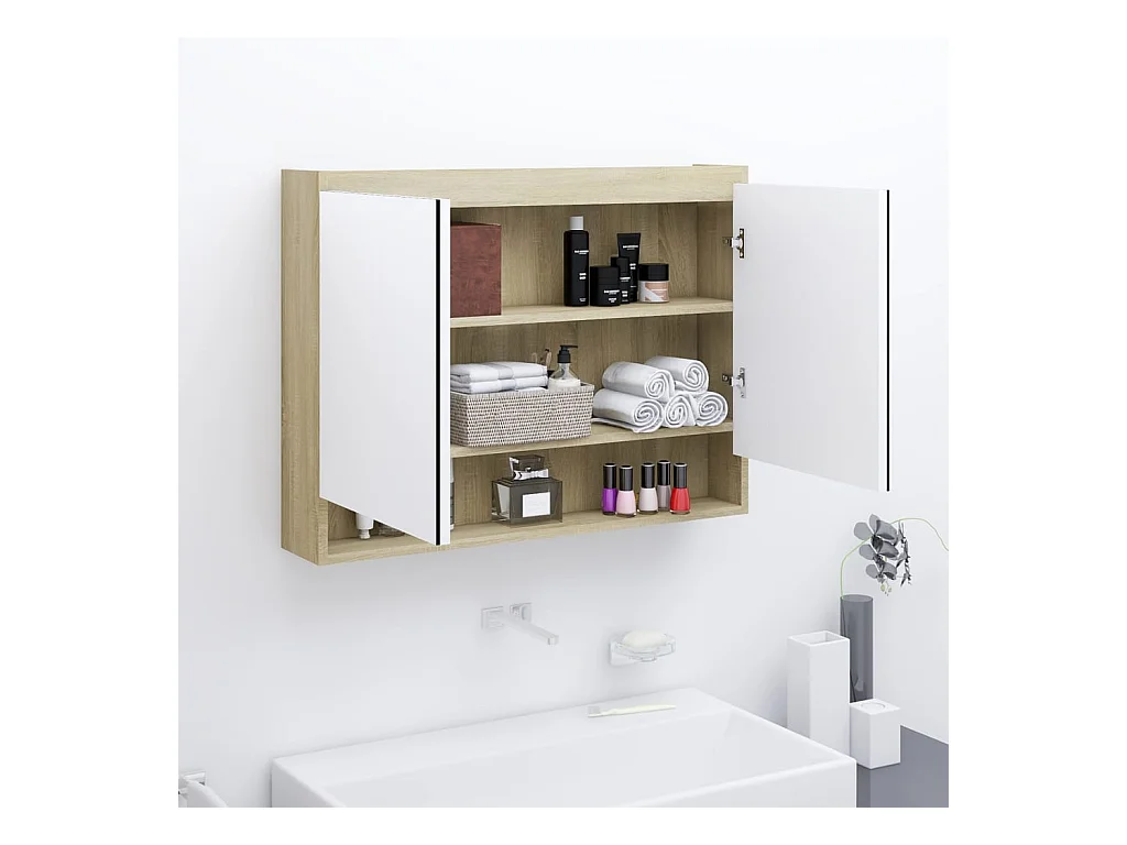 Armario de baño con espejo MDF blanco y roble 80x15x60 cm