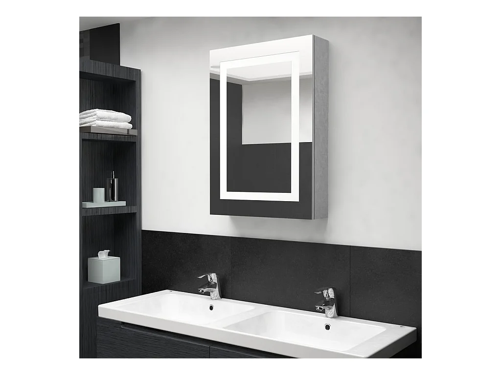 Armario de baño con espejo y LED gris hormigón 50x13x70 cm