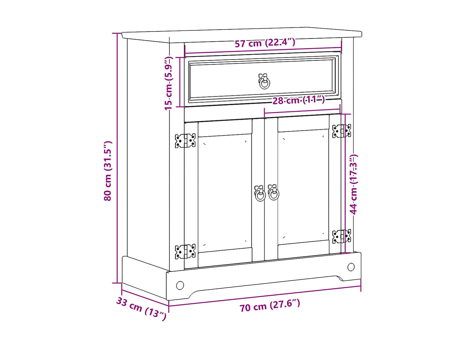 Armario de baño Corona madera maciza de pino 70x33x80 cm
