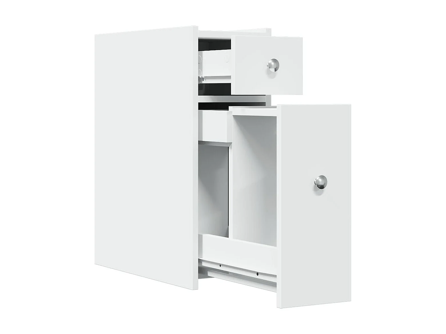 Armario de baño estrecho con ruedas madera de ingeniería blanco