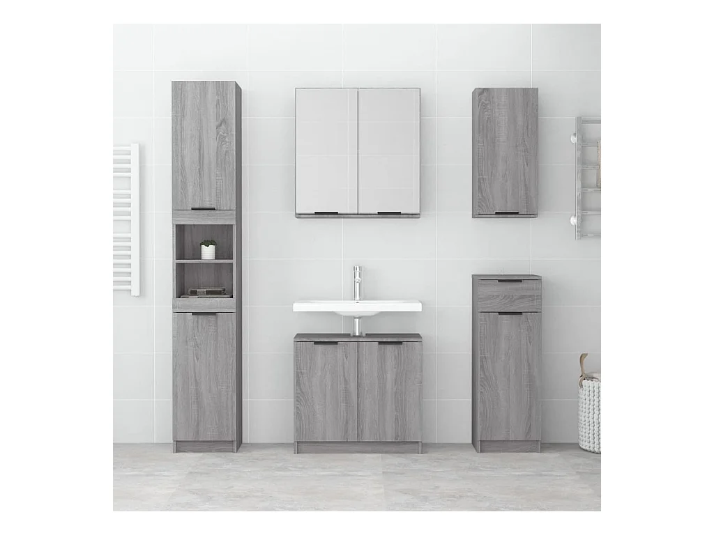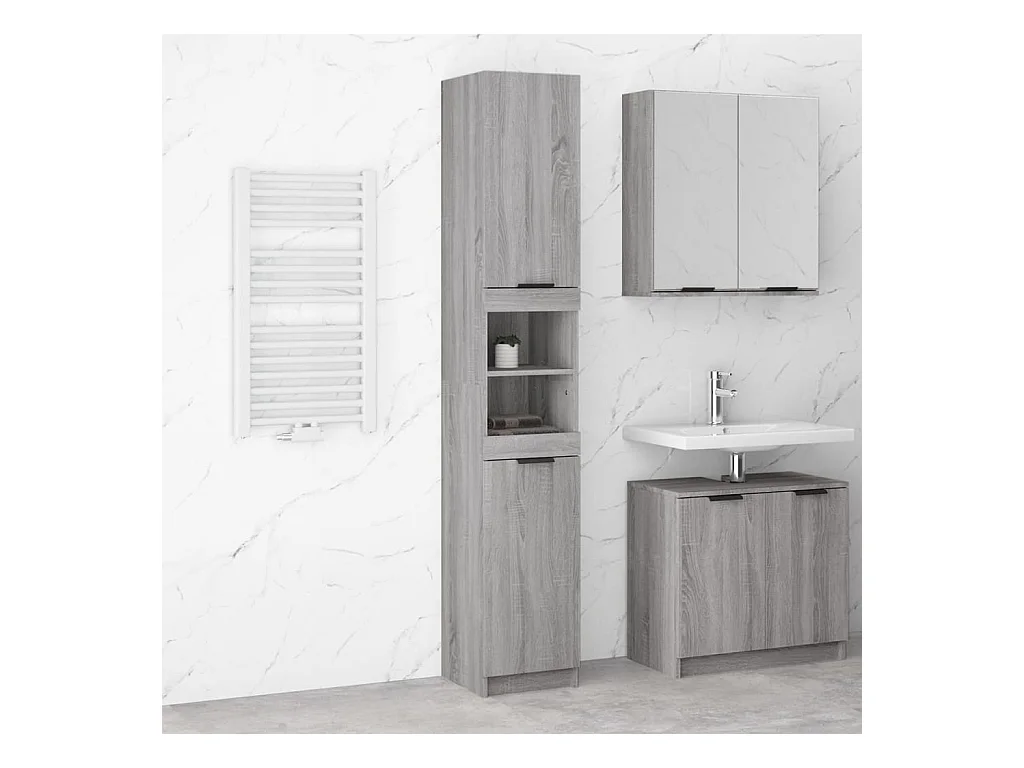 Armario de baño madera contrachapada gris Sonoma 30x30x100 cm ES451022