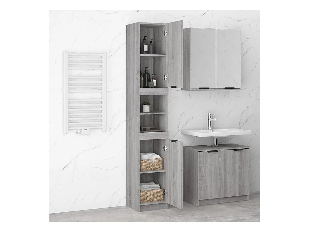 Armario de baño madera contrachapada gris Sonoma 30x30x190 cm ES640348