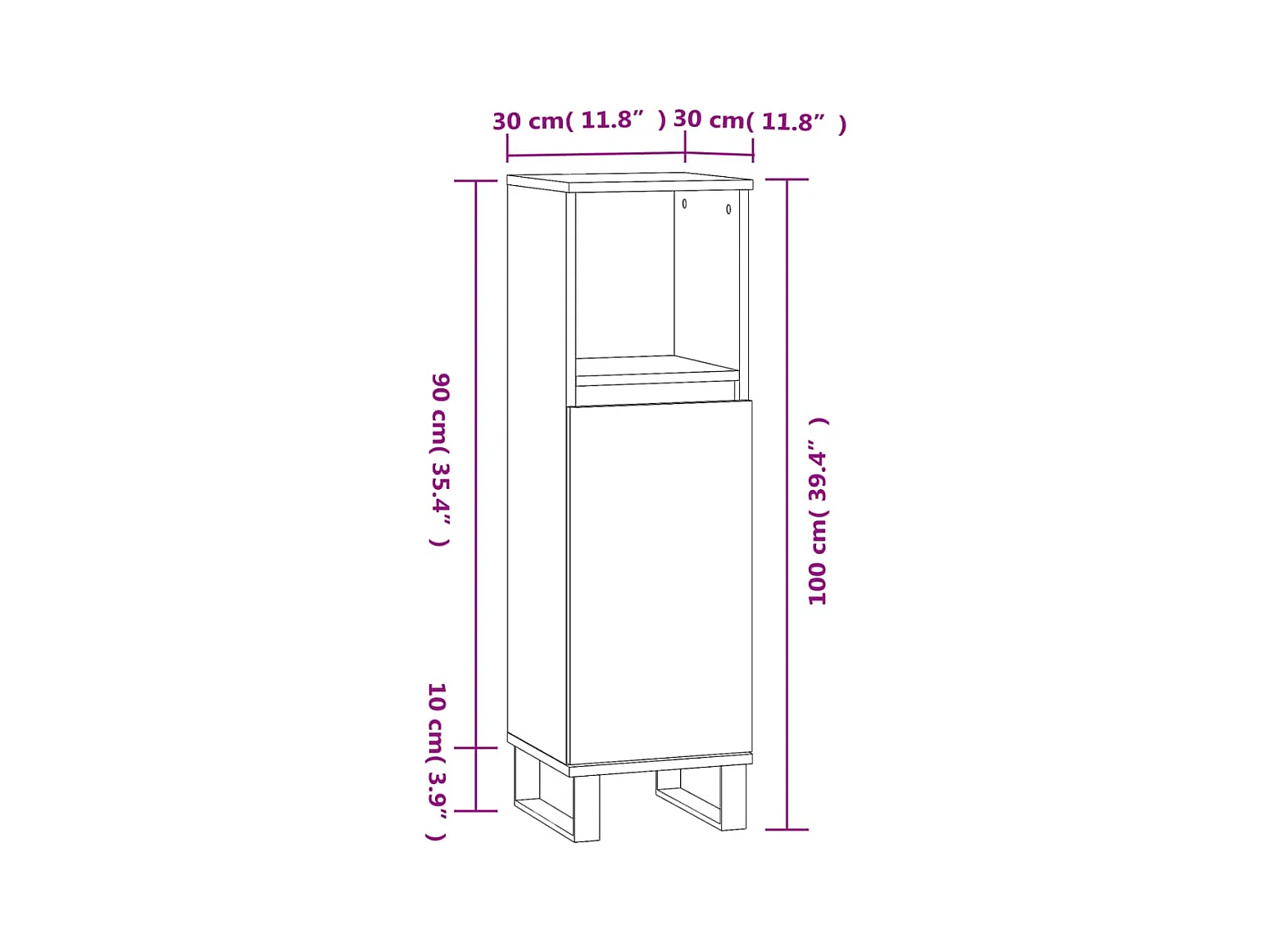 Armario de baño madera contrachapada roble ahumado 30x30x100 cm