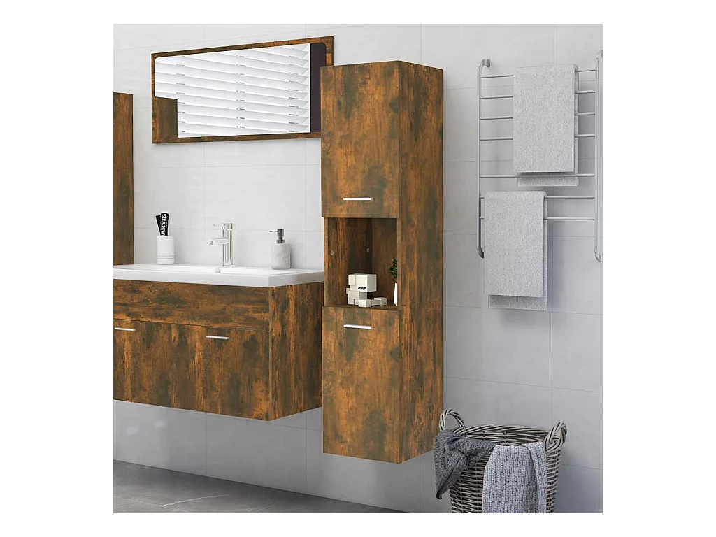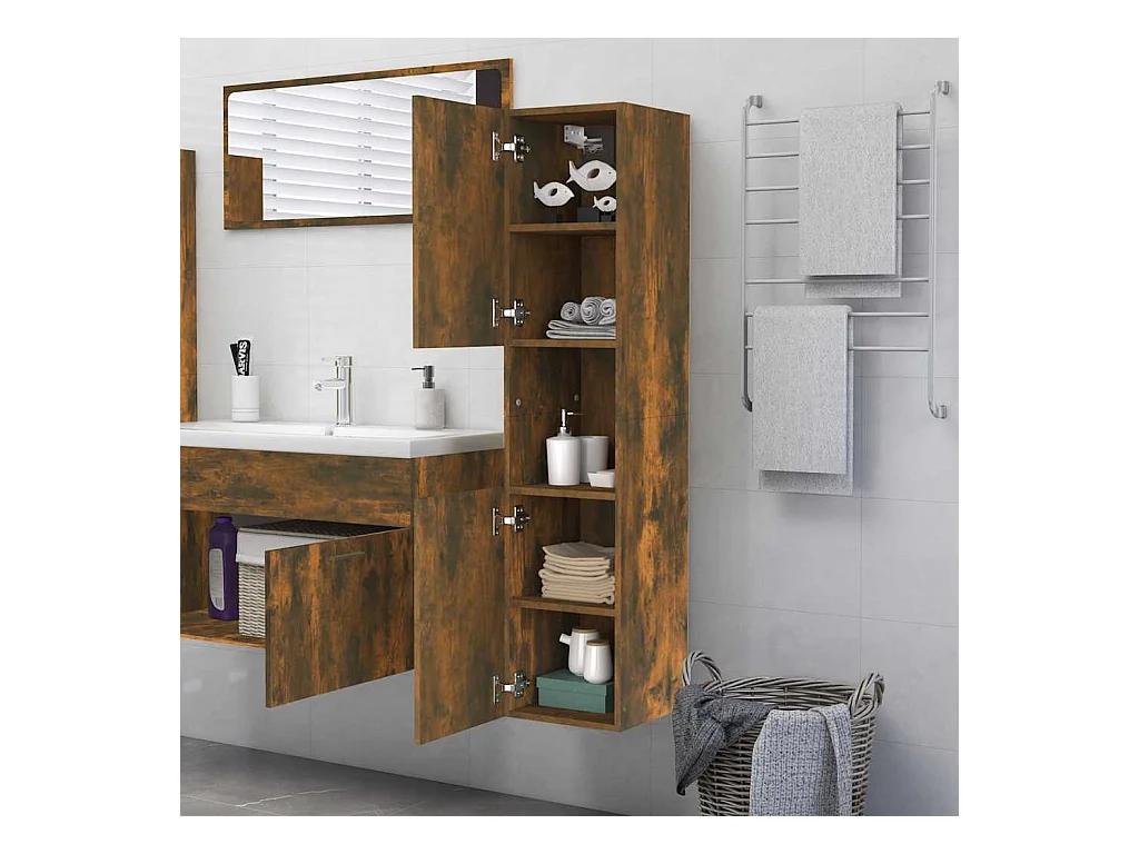 Armario de baño madera contrachapada roble ahumado 30x30x190 cm