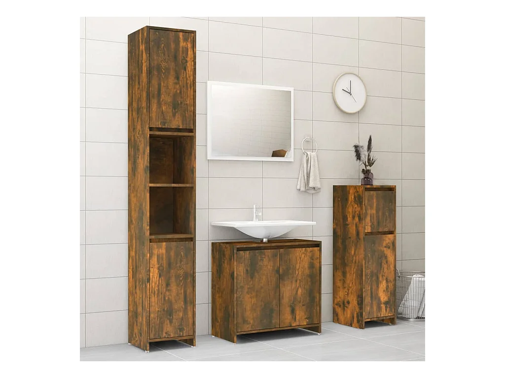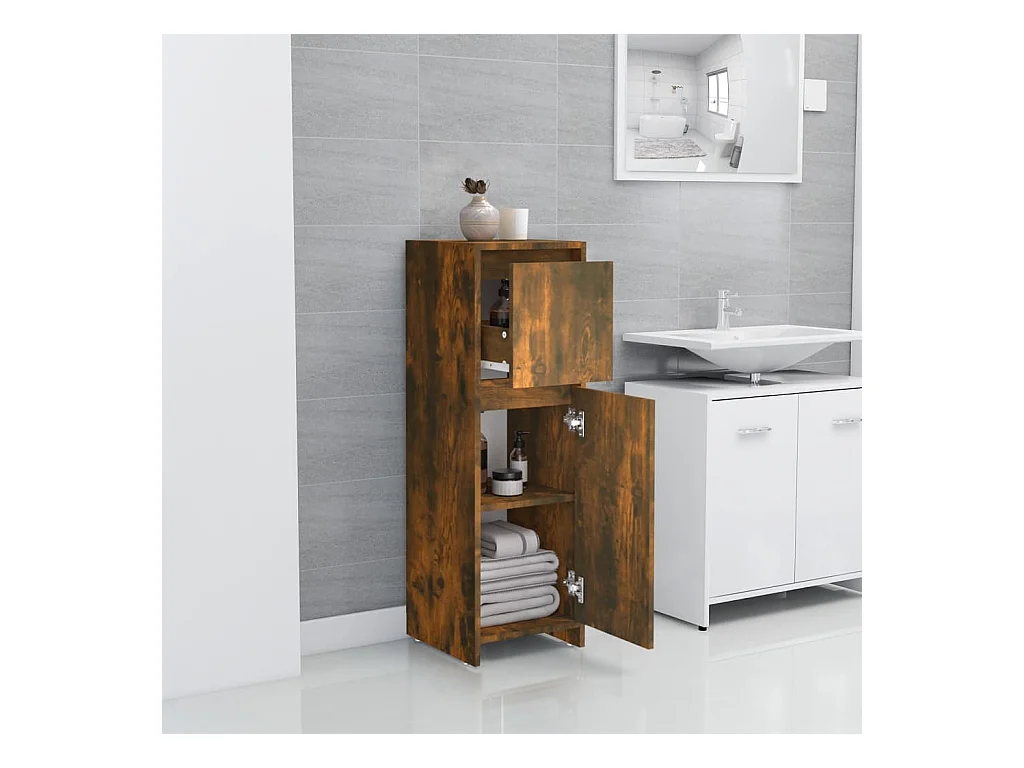 Armario de baño madera contrachapada roble ahumado 30x30x95 cm