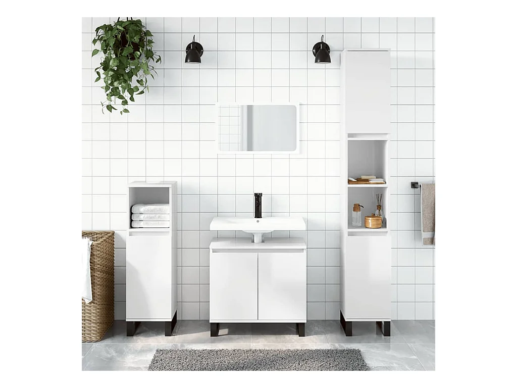 Armario de baño madera de ingeniería blanco brillo 58x33x60 cm