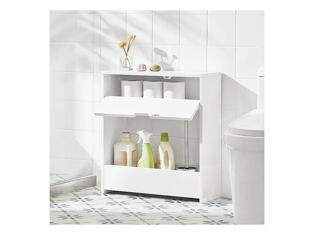 Armario de Baño Mueble de Almacenaje con 1 Cesto para Colada y 1 Cajón Blanco 66 x 37 x 95 cm BZR66-W SoBuy ES