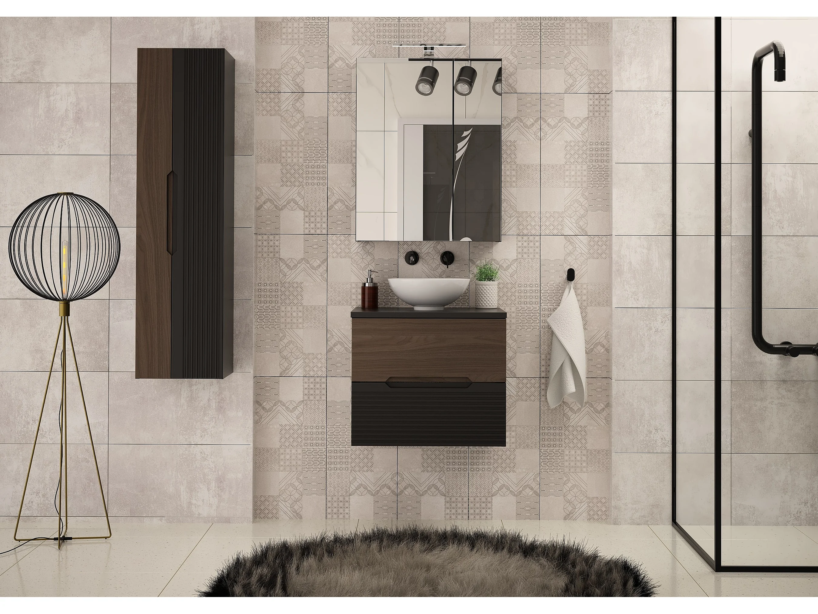 Armario de baño para lavabo 60 cm Negro mate / Nogal Avella