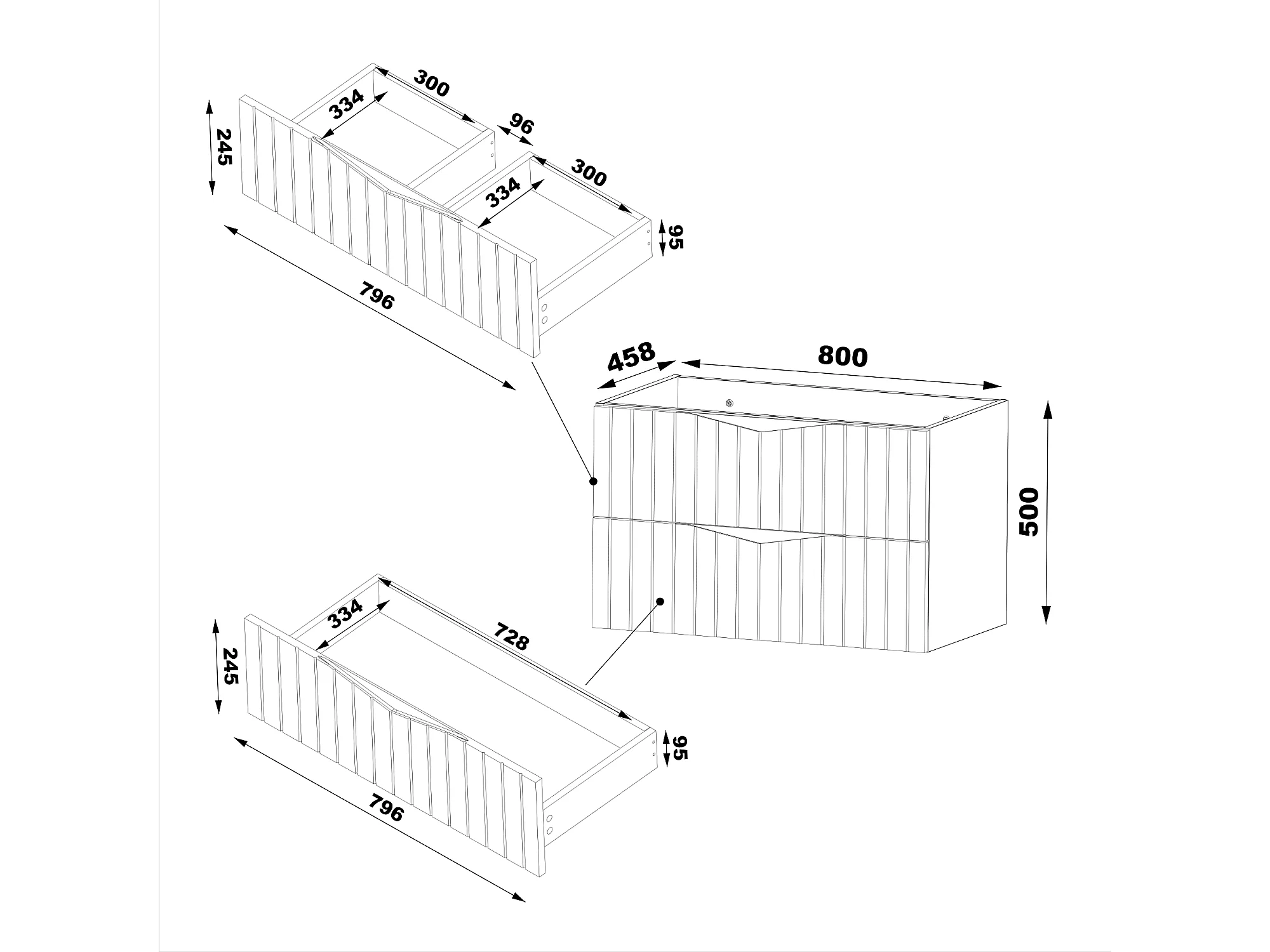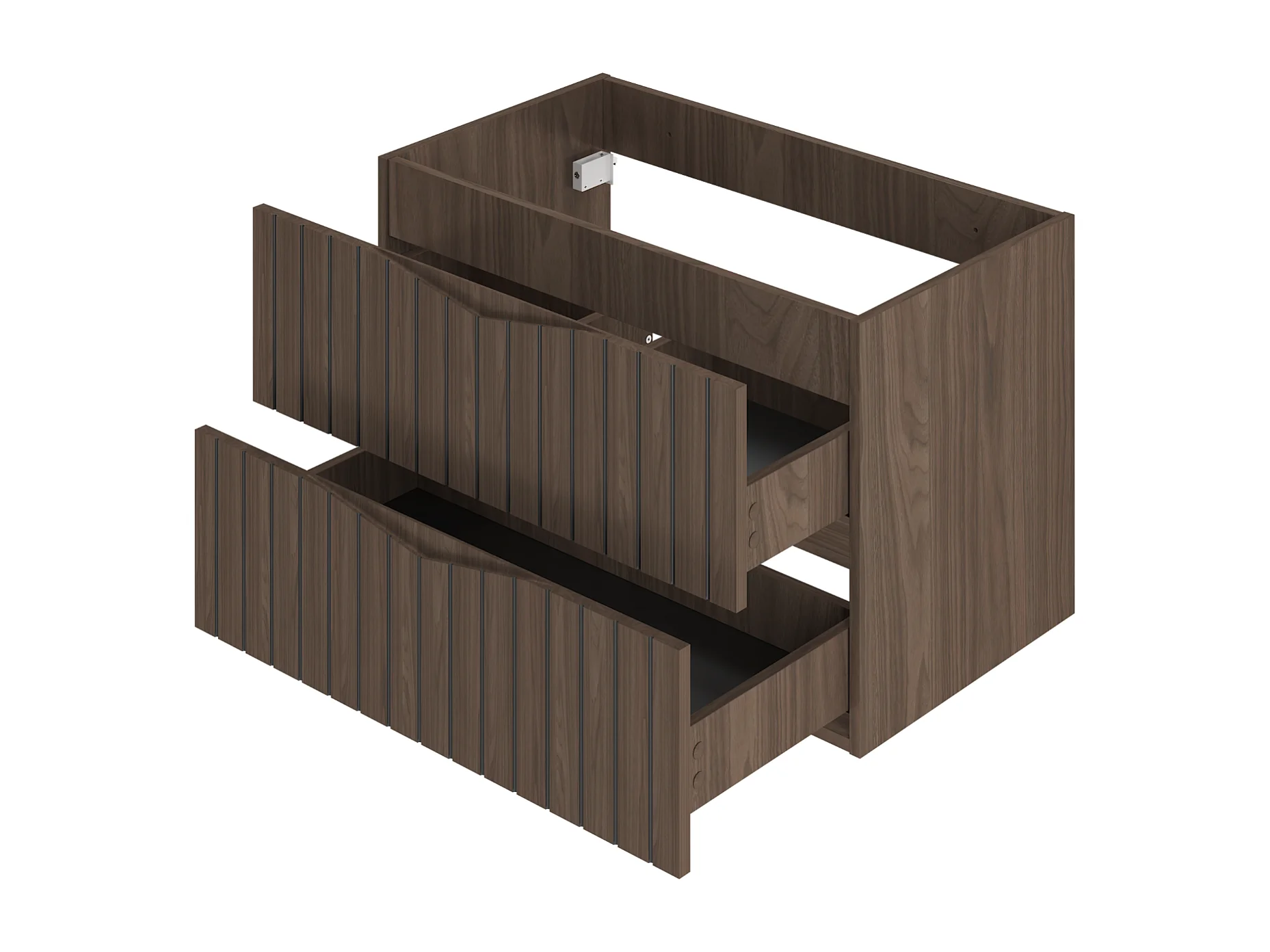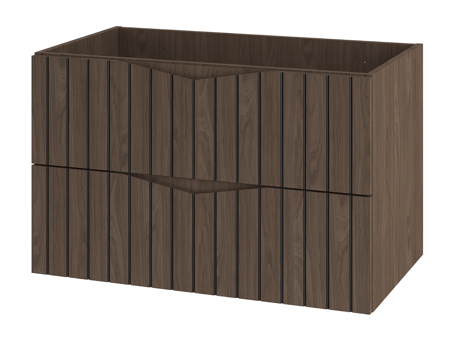 Armario de baño para lavabo 80 cm, 2 cajones, frentes ranurados, roble nogal Stella