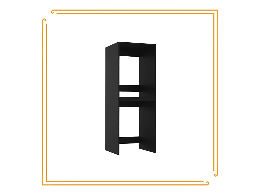 Armario de baño sobre lavadora y secadora, columna de estantes para electrodomésticos en color negro.