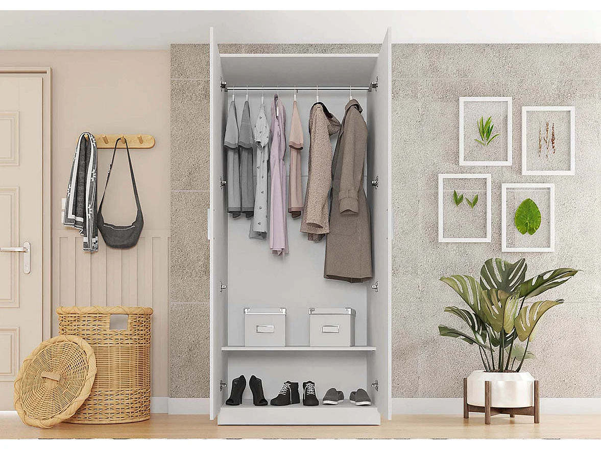 Armario de Dormitorio 2 Puertas W, con Espejo, Blanco