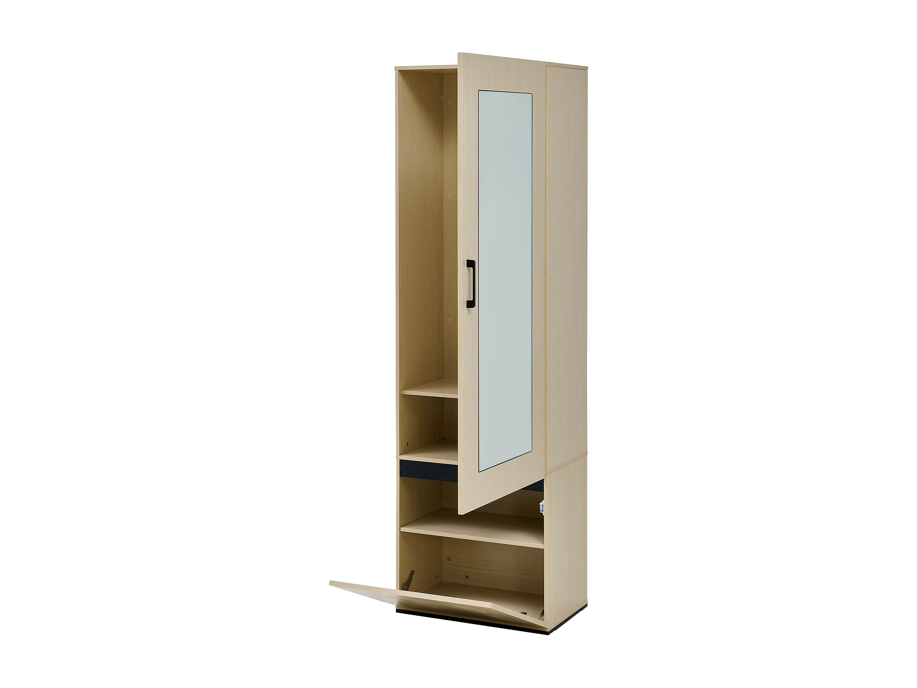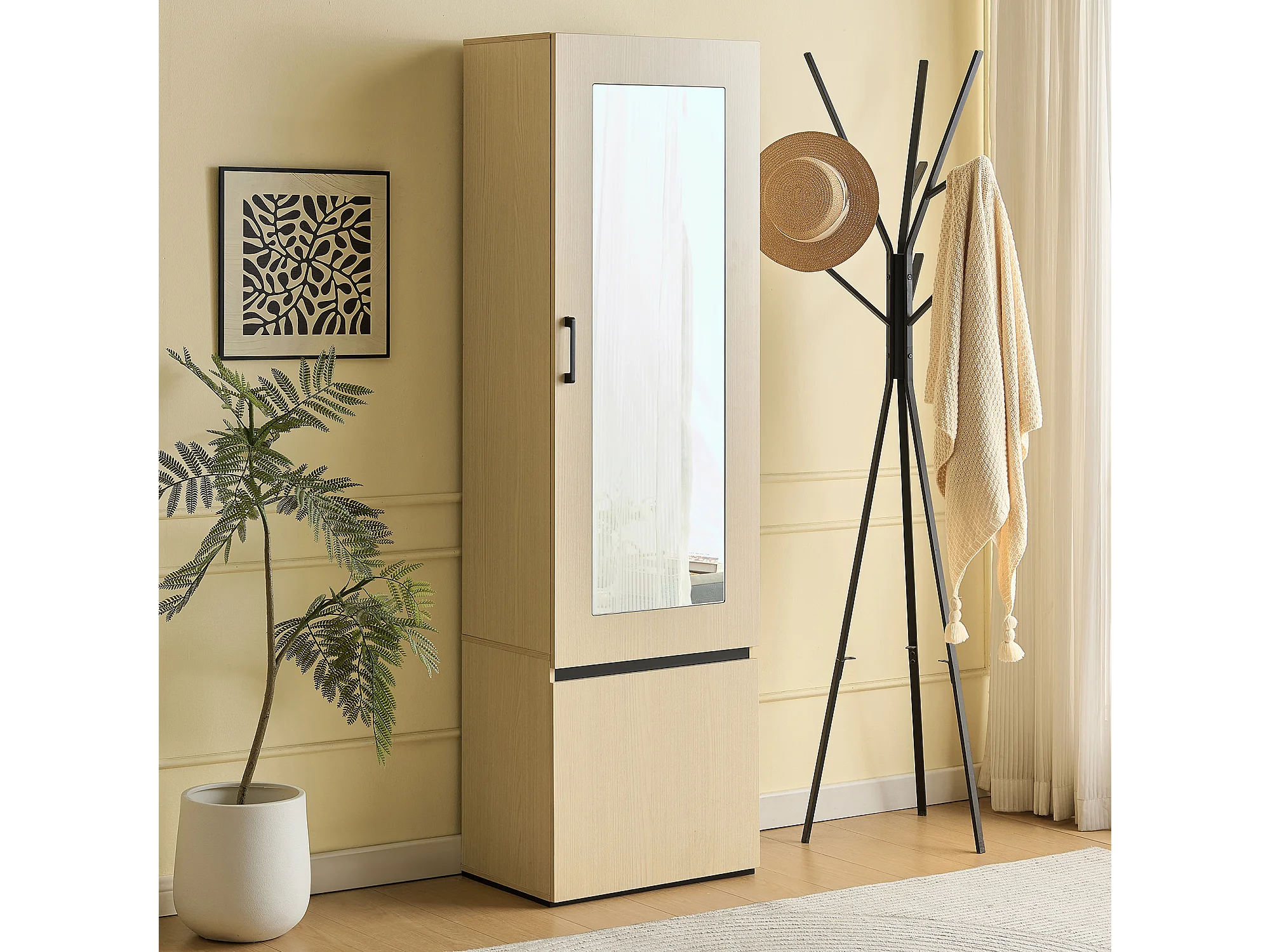 Armario de dos puertas con espejo y perchas deslizantes - madera - natural