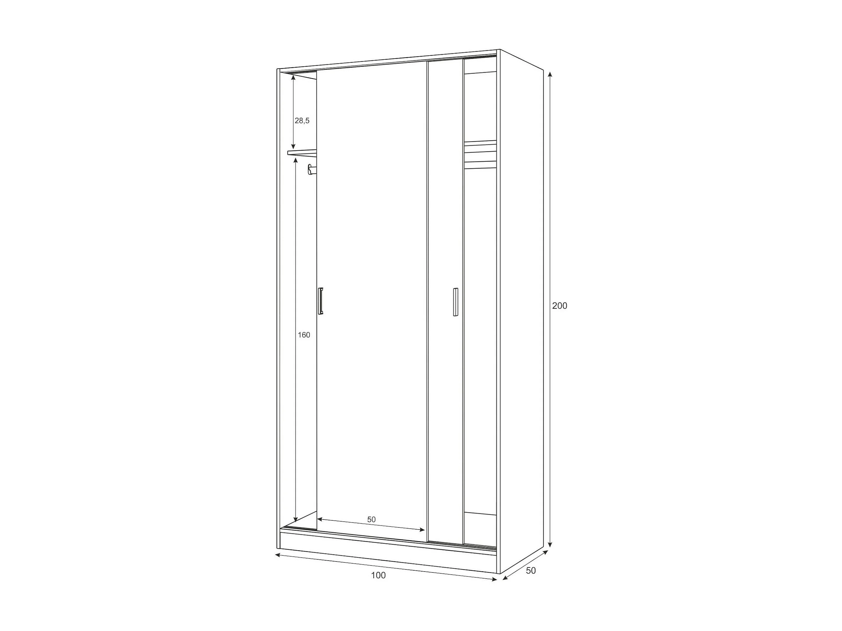 Guardarropa Dagnan, Armario dormitorio con 2 puertas correderas, Mueble con balda y barra perchero, 100x50h200 cm, Blanco