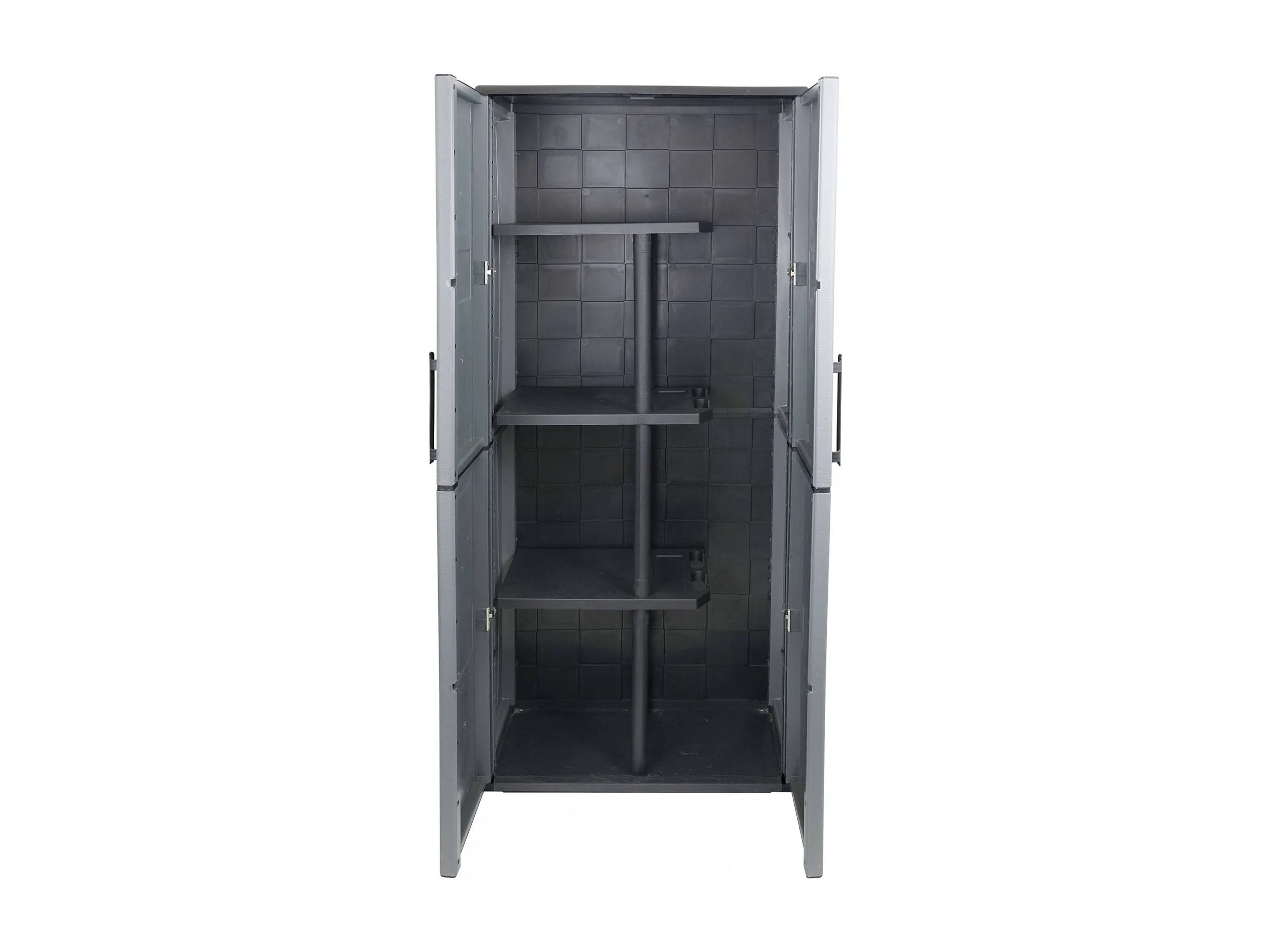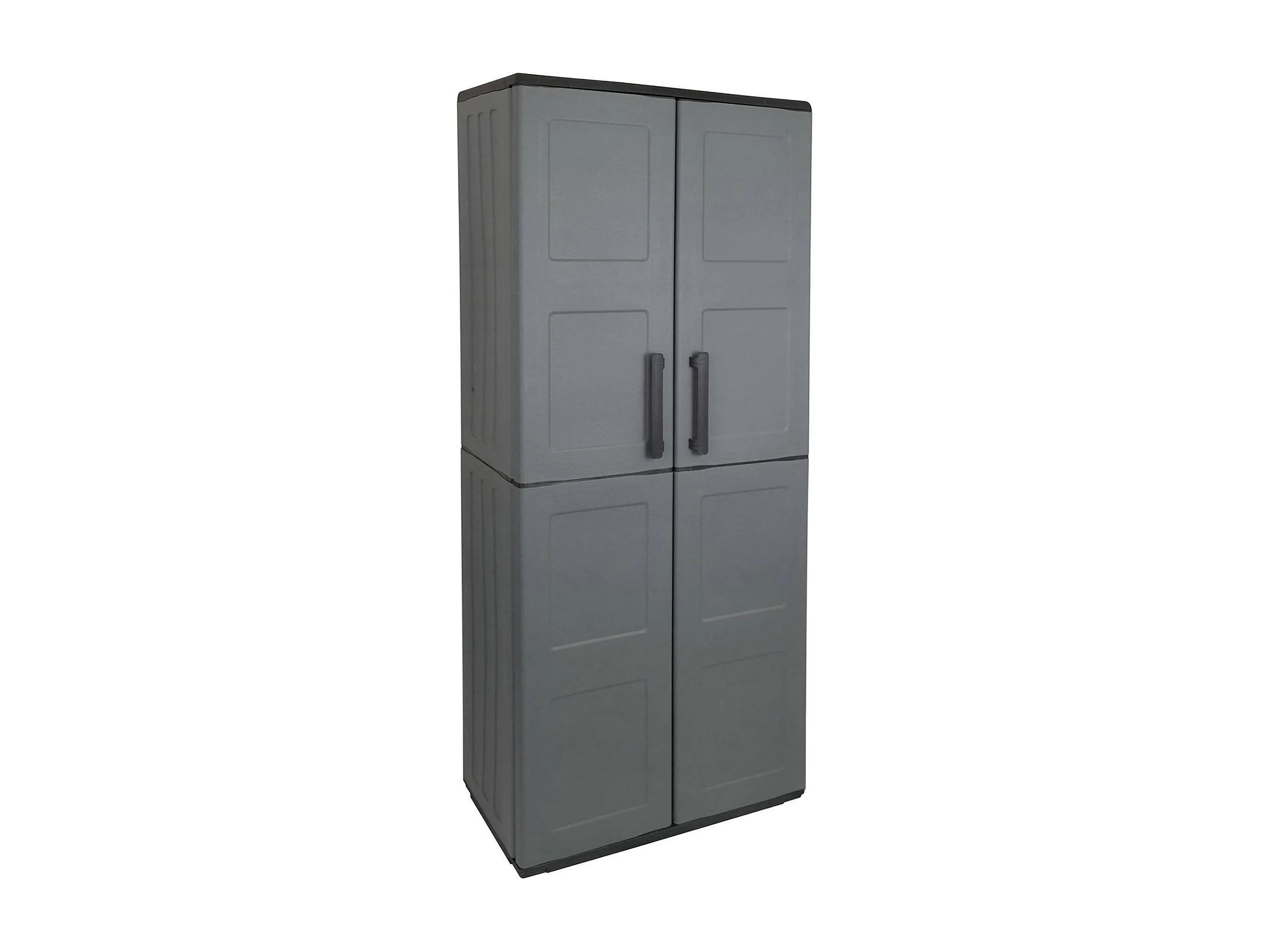 Armario de exterior Dargentes, Mueble portaescobas multiusos, mueble de exterior de 2 puertas, 100% Made in Italy, Acabado cuadros, 68x37h163 cm, Gris y Negro
