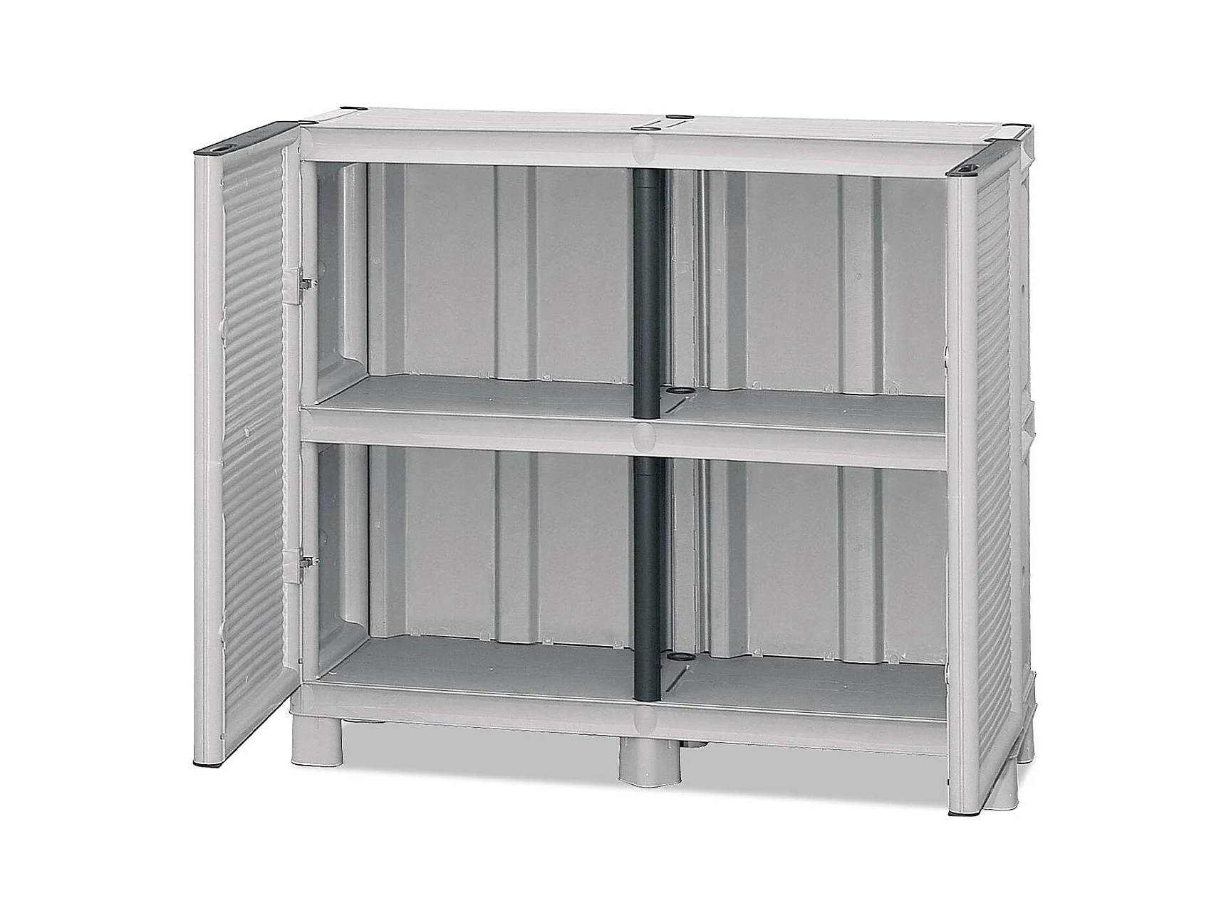 Armario multiusos para exterior o interior, mueble 3 puertas y 1 balda en polipropileno, 100% Made in Italy, 102x37h84 cm, color Gris