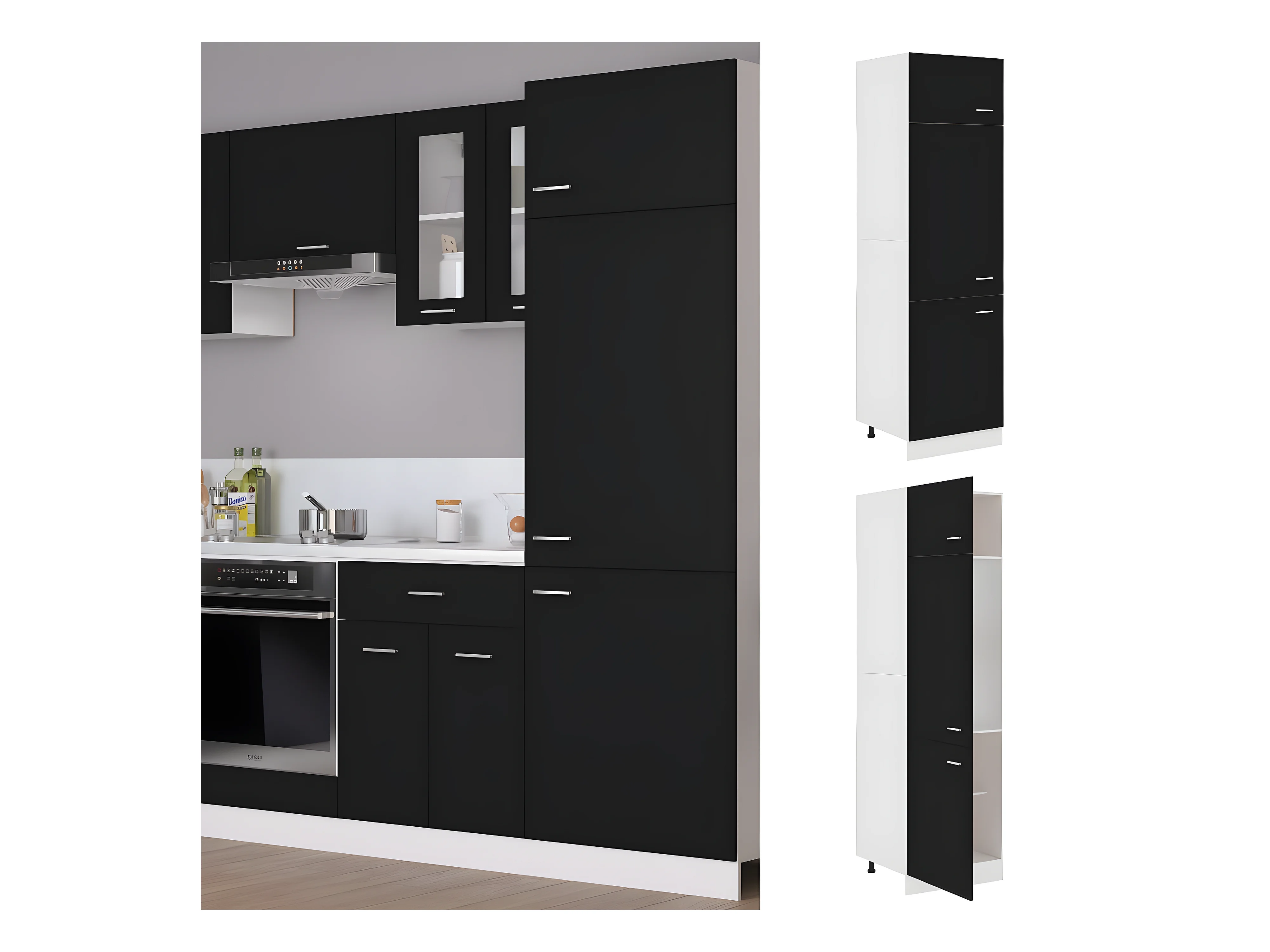 Gabinete de cocina de madera de ingeniería negra Lucca