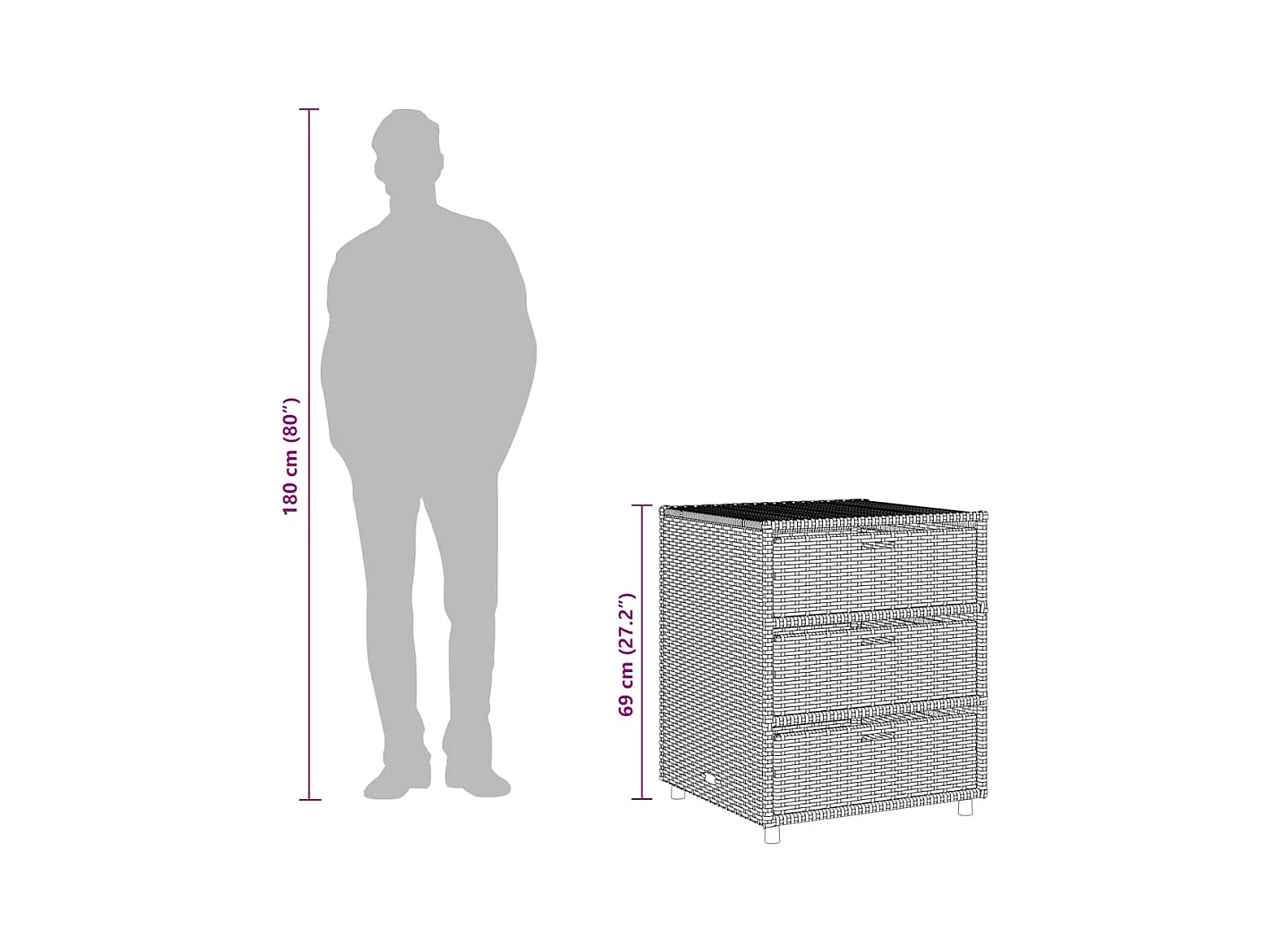 Mueble de jardín con 3 cajones en resina trenzada gris