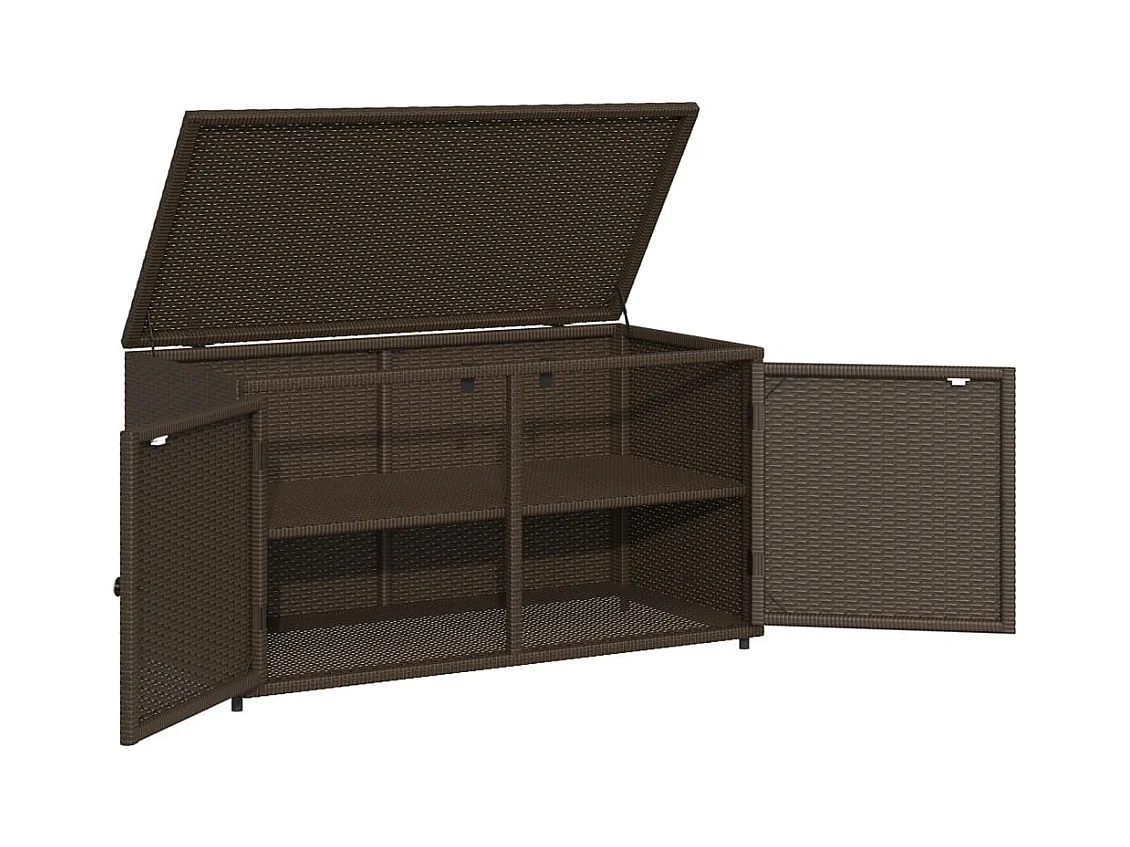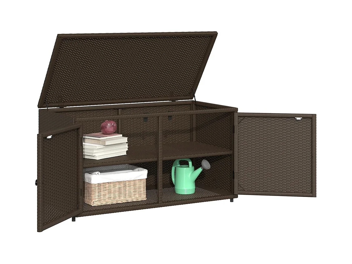 Caja de almacenamiento de jardín marrón 110x50x58 cm resina tejida