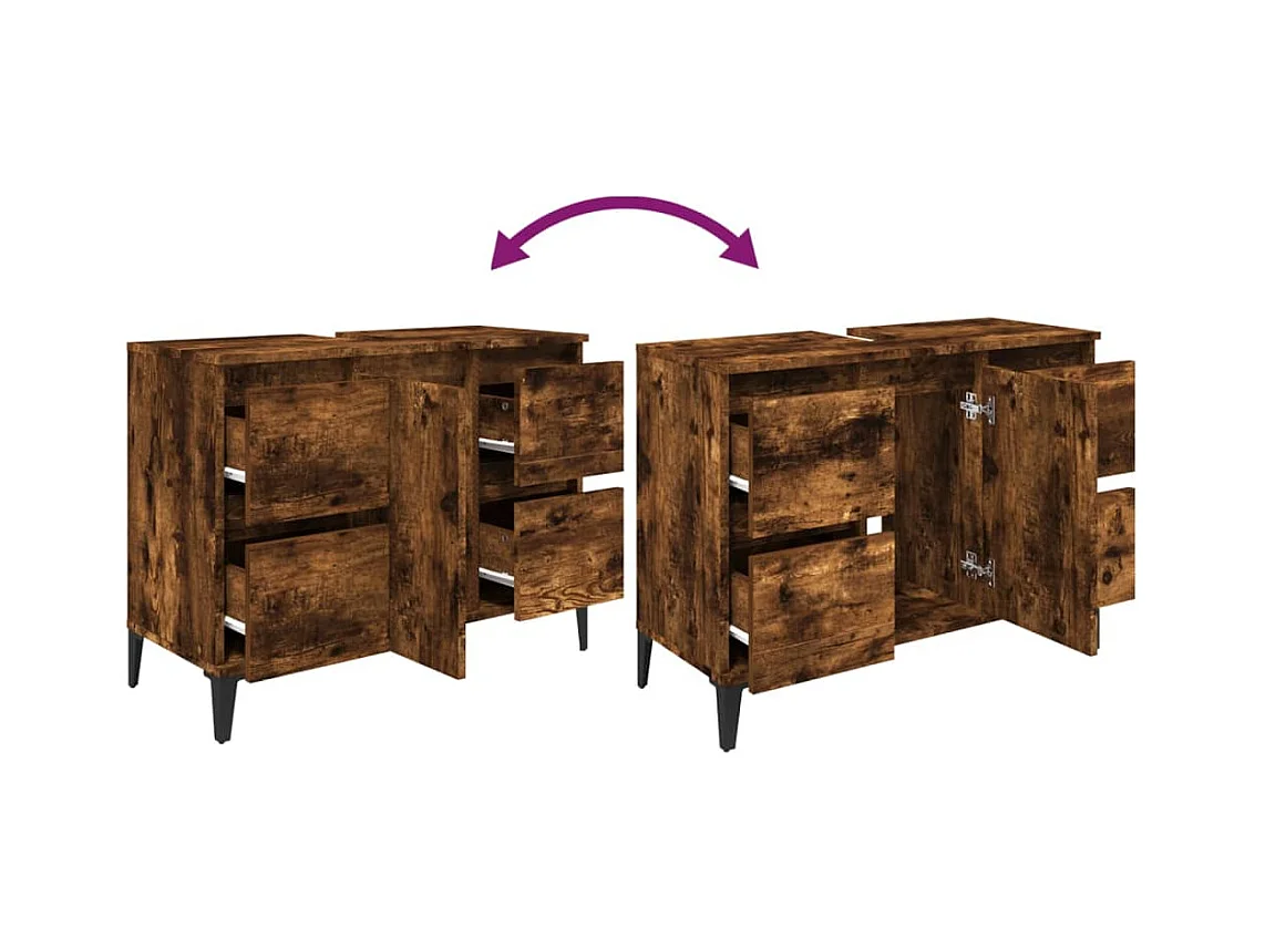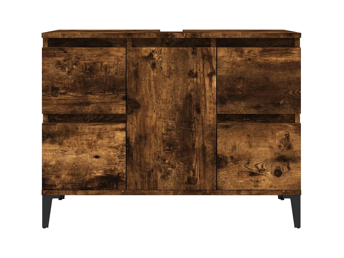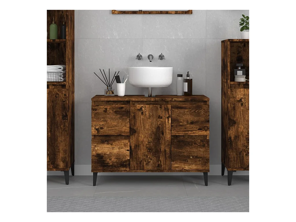 Armario de lavabo madera contrachapada roble ahumado 80x33x60cm