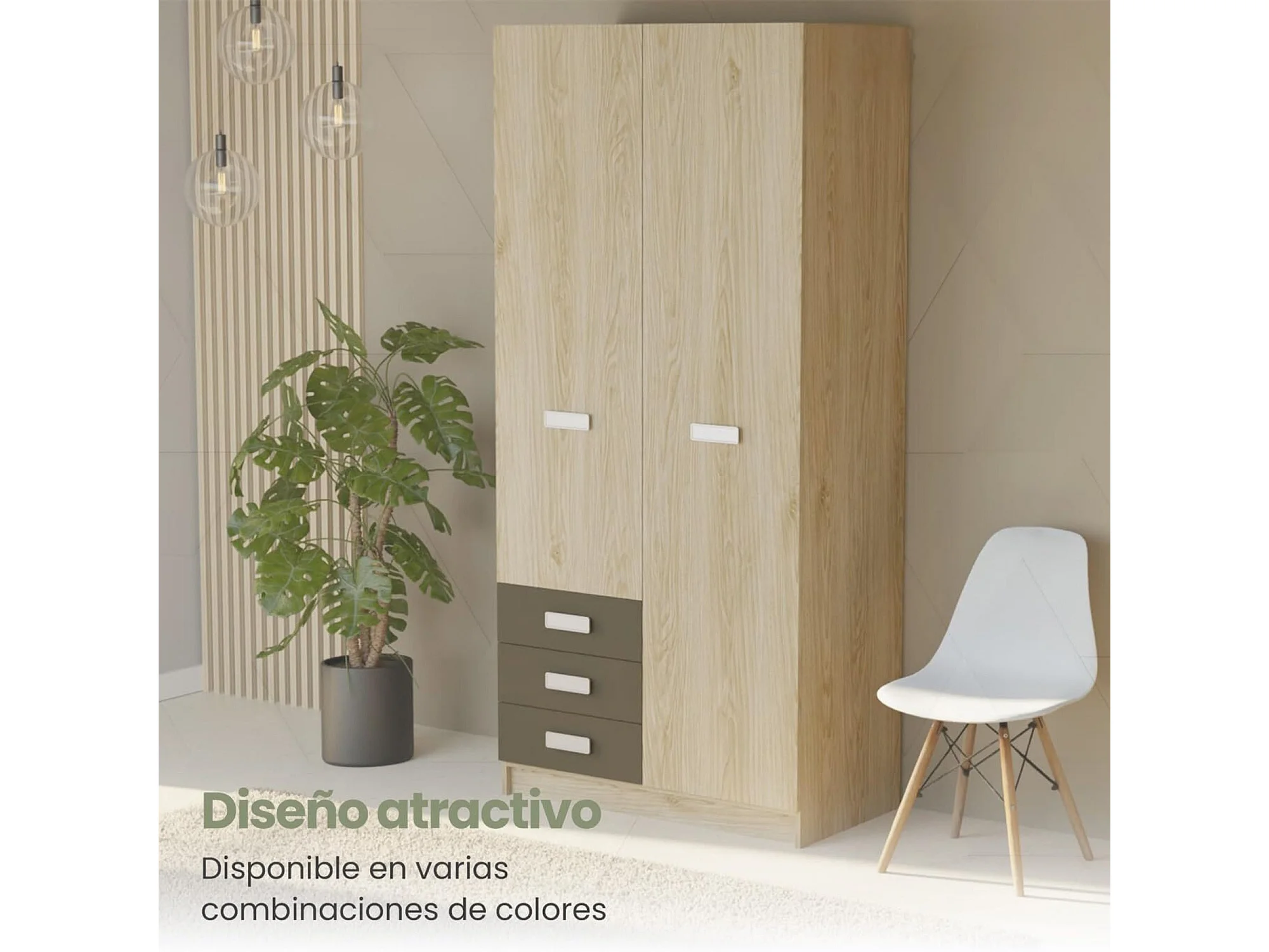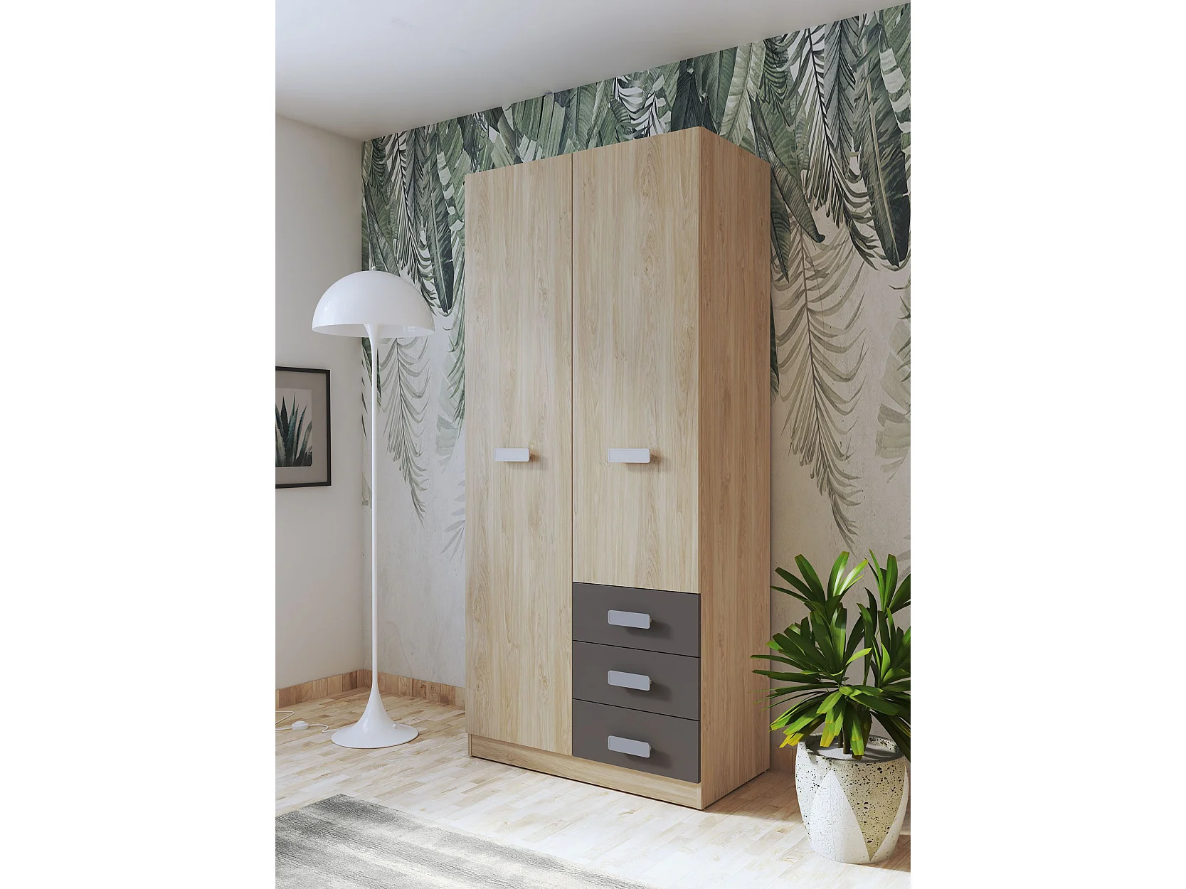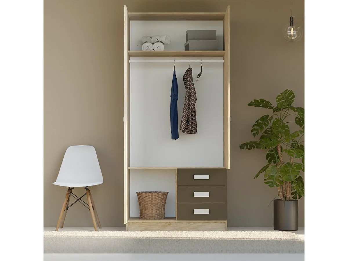 Armario de Madera con 2 Puertas, Altillo y 3 Cajones – Puccini - Grafito, Perfecto para Dormitorios Matrimoniales e Infantiles, 94,8x207,6x50 cm