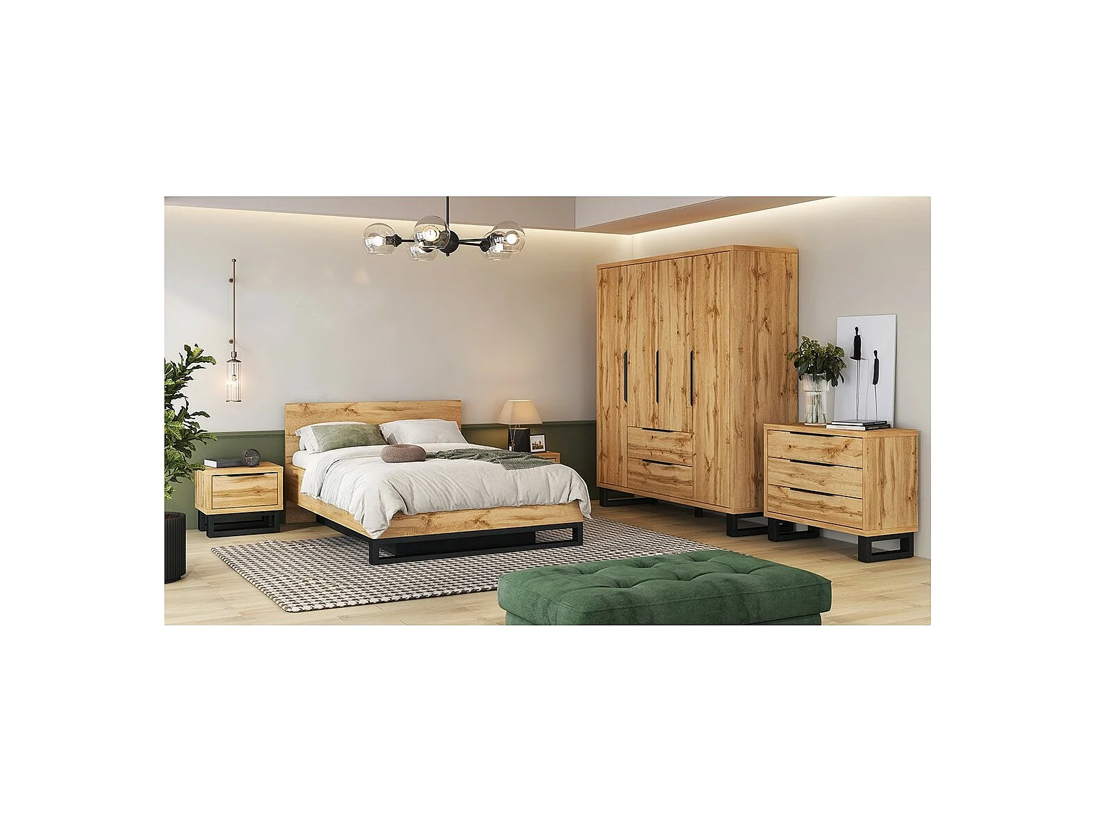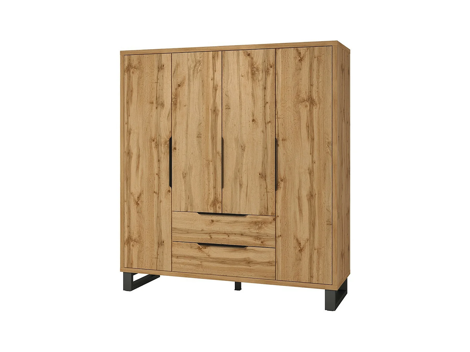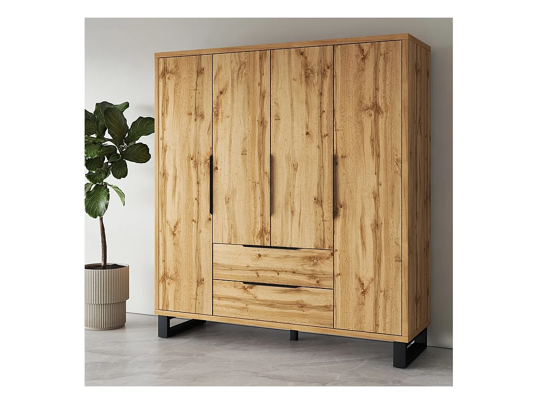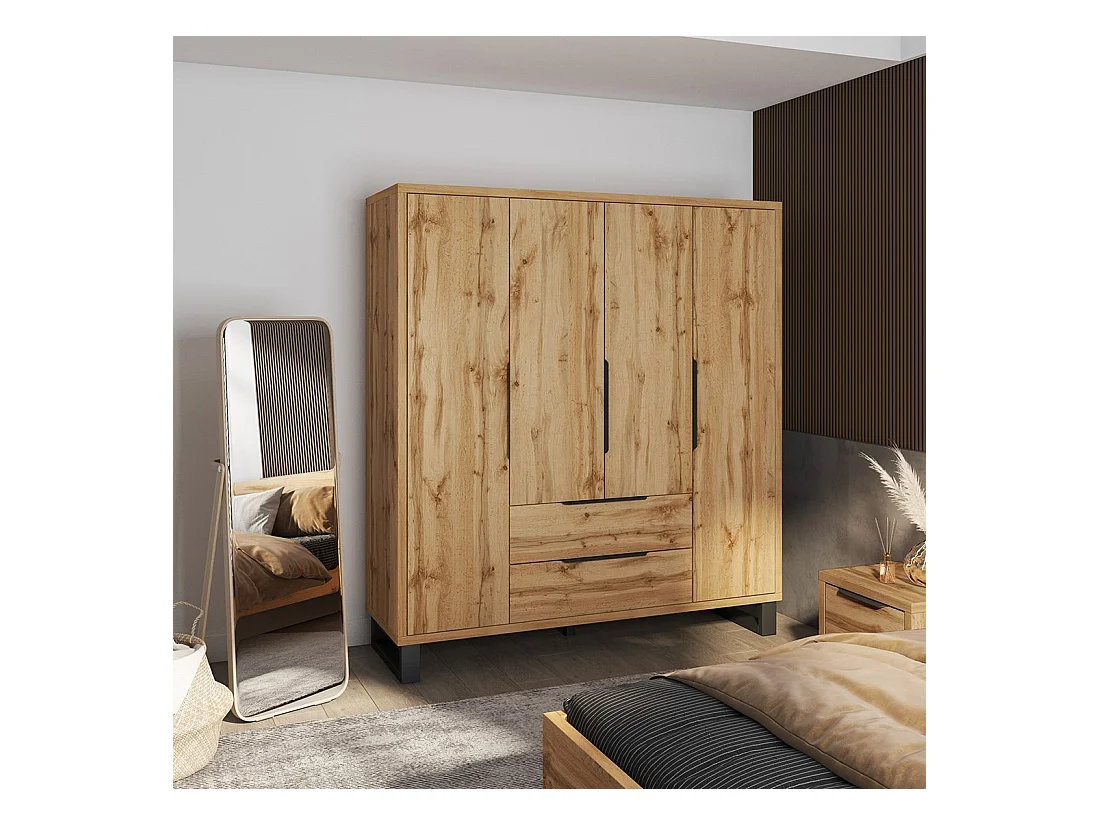 Armario de madera estilo escandinavo de 190 cm con 4 puertas y 2 cajones en color roble natural. Colección MILOS.