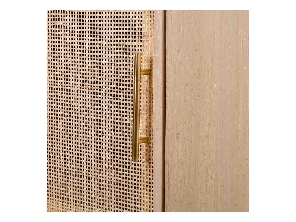 Aparador 80x39,5x120 cm, Tejido de ratán auténtico, Dos cajones, Dos puertas y Dos compartimentos abiertos, Patas de mesa de 28 cm de altura.