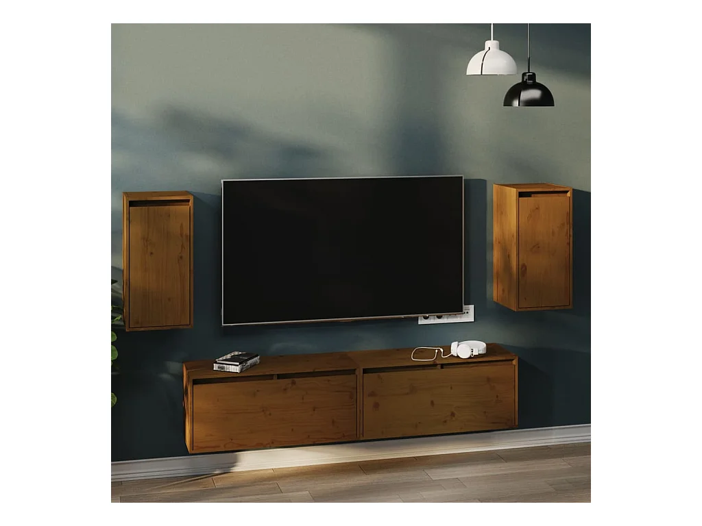 Armarios de pared 2 uds madera de pino marrón miel 30x30x100 cm ES740306