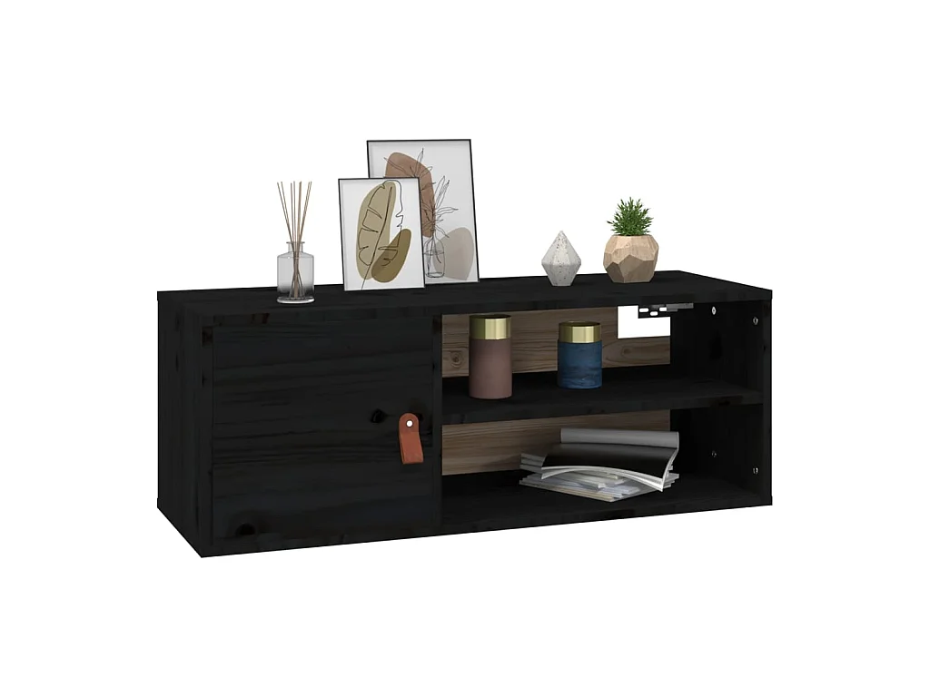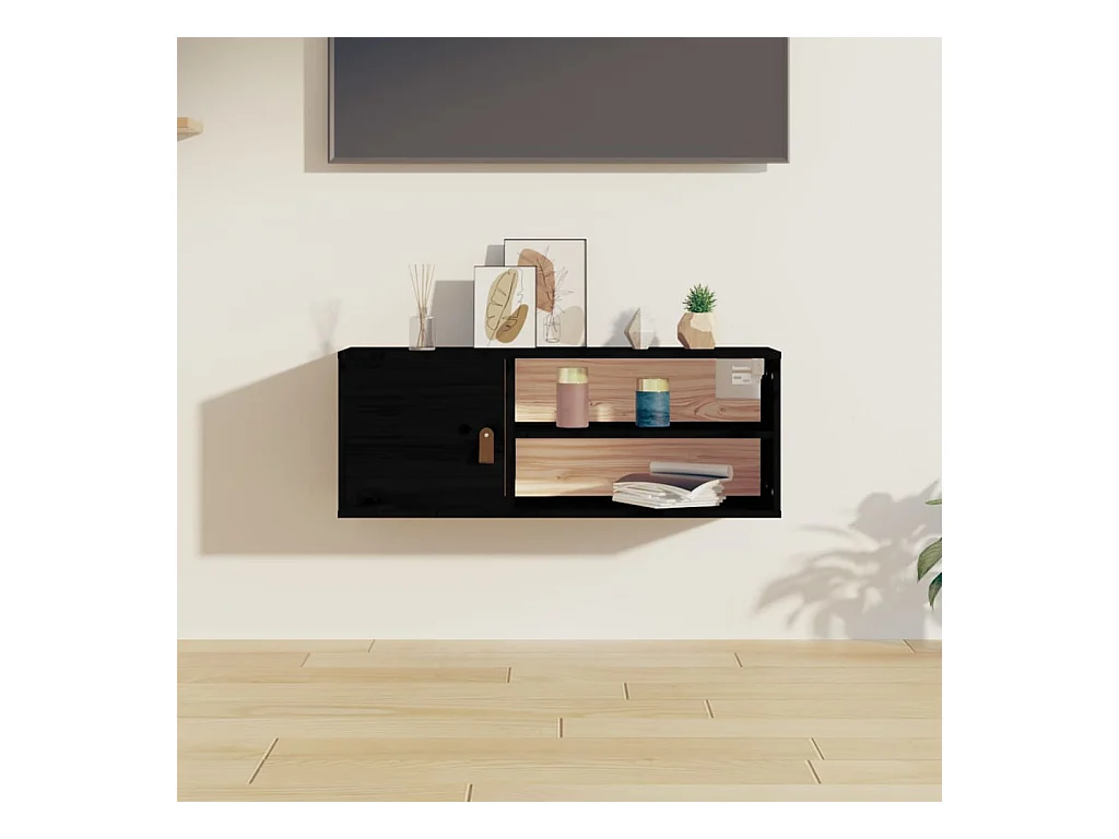 Armario de pared de madera maciza de pino negro 80x30x30 cm ES402841