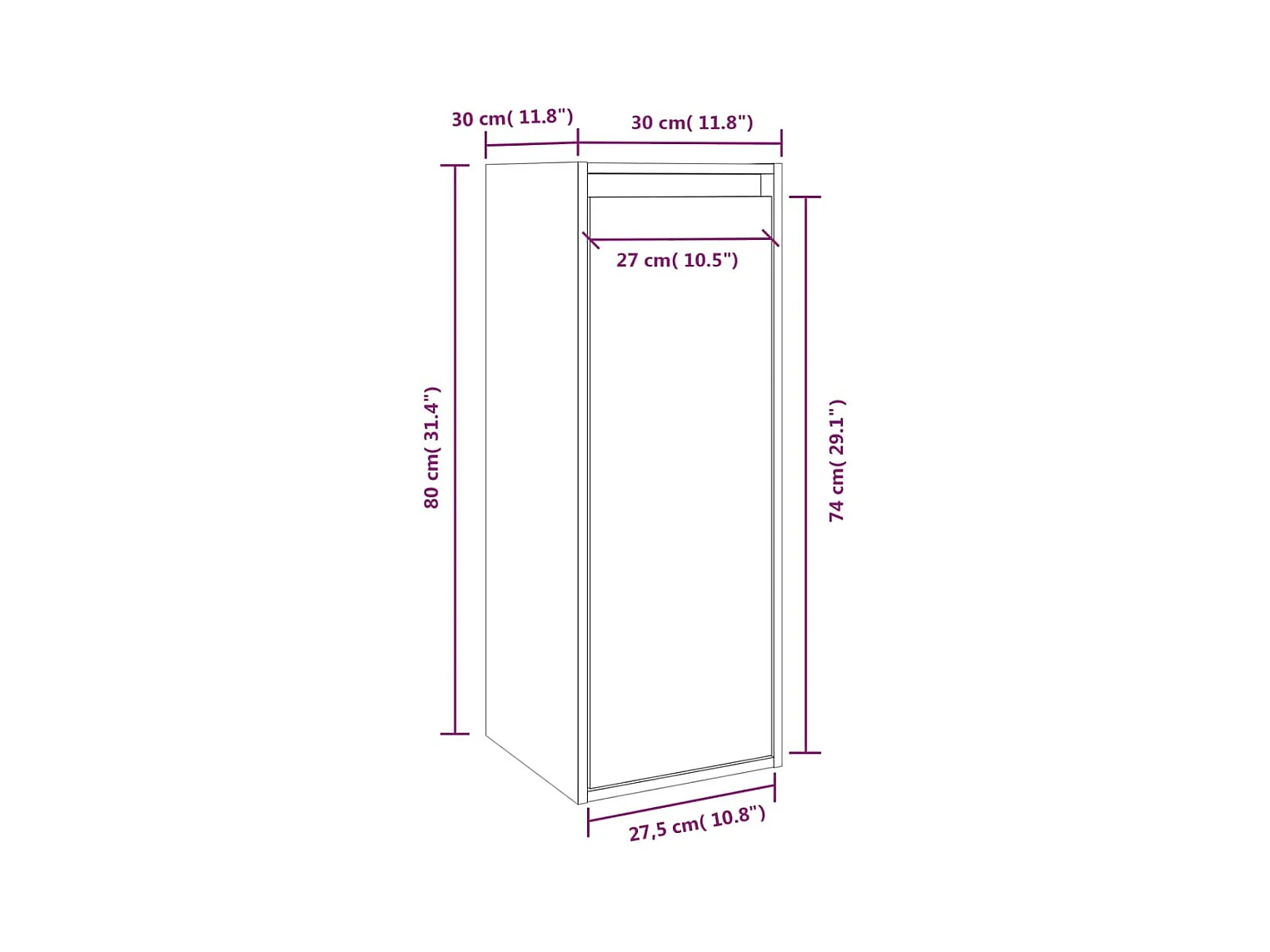 Armario de pared Gris 30x30x80 cm Madera maciza de pino