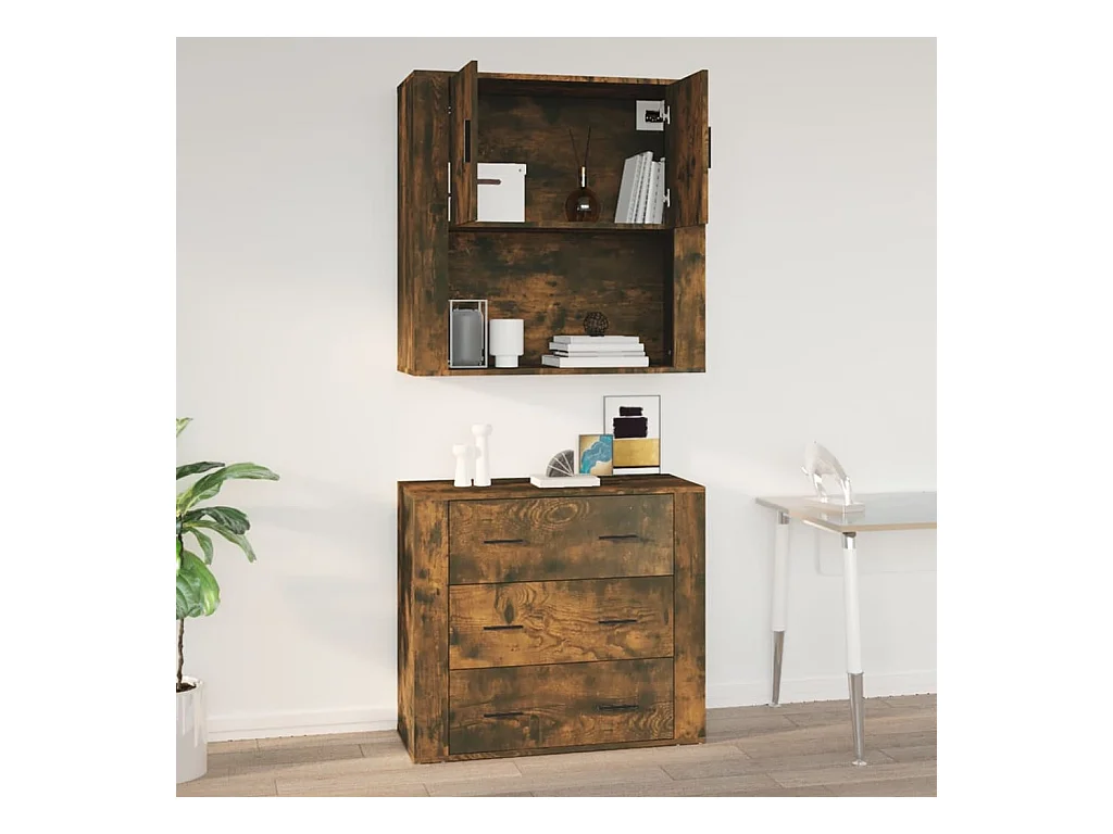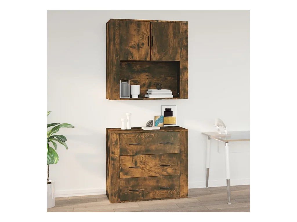 Armarios de pared 2 unidades madera de ingeniería roble ahumado