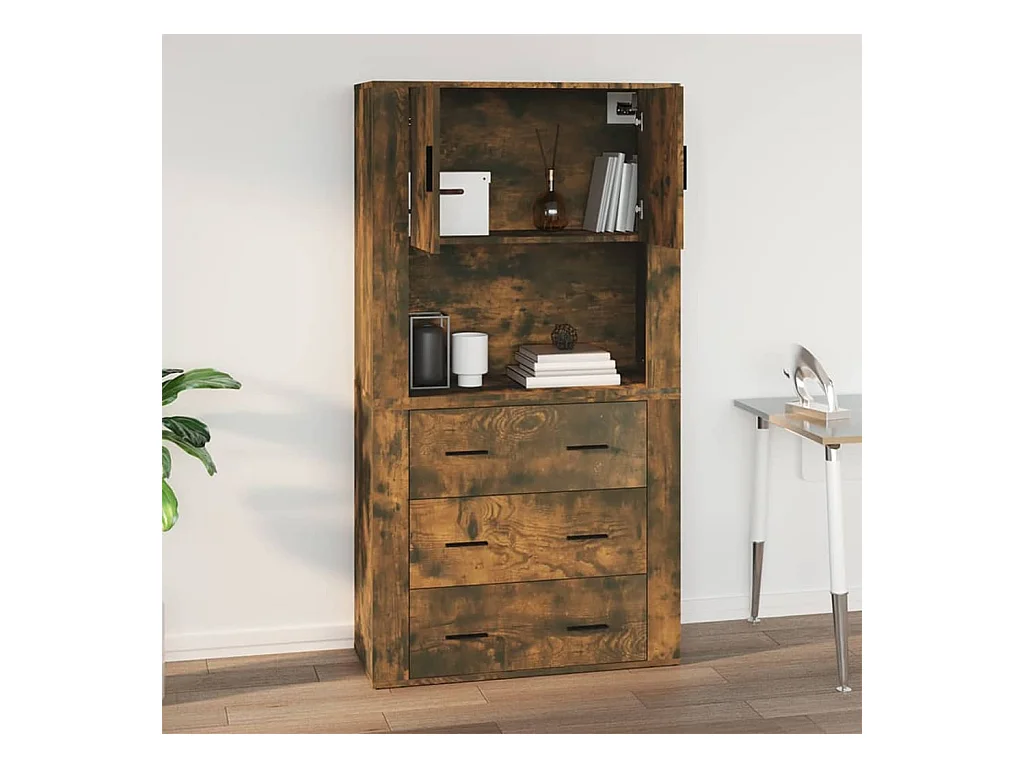 Armario de pared madera ingeniería roble ahumado 34,5x34x90 cm