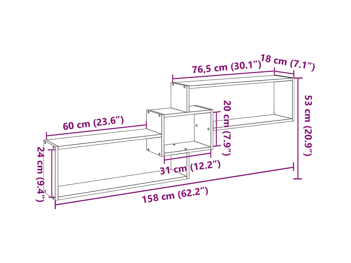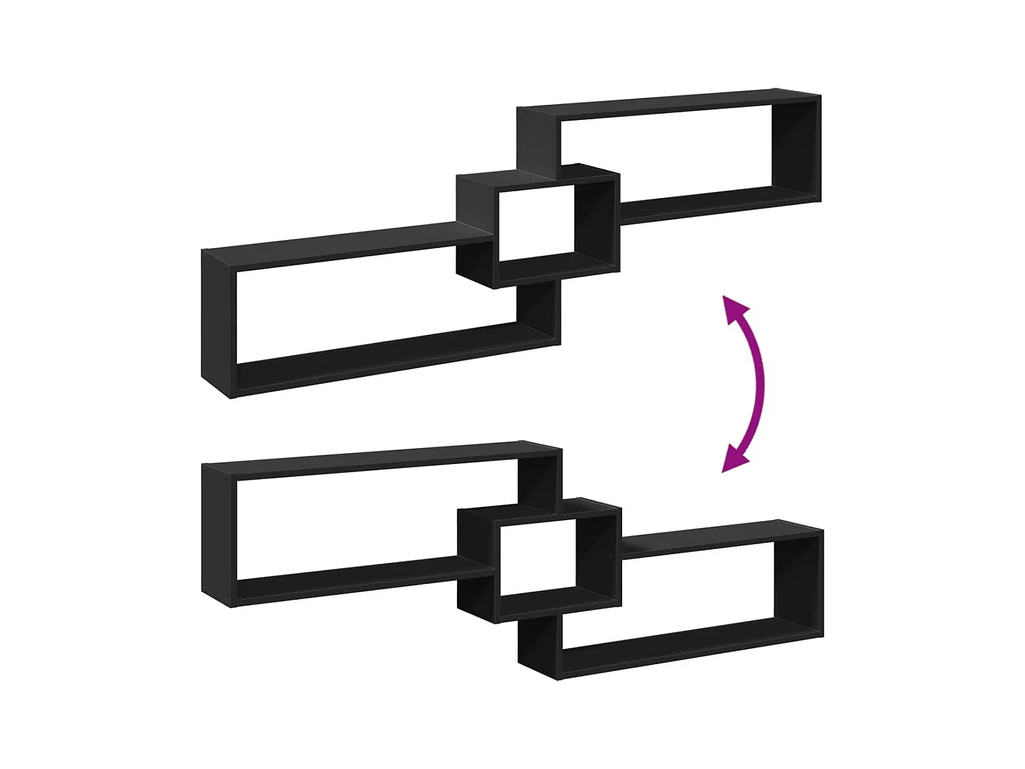 Estantes de pared 3 uds madera de ingeniería negro 58x18x18 cm