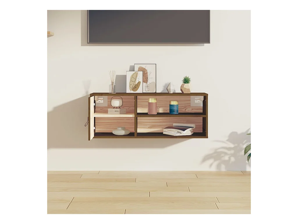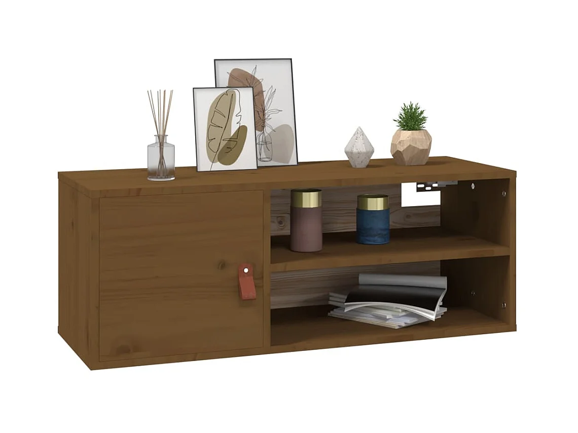 Armario de pared madera maciza de pino marrón miel 80x30x30 cm ES365223