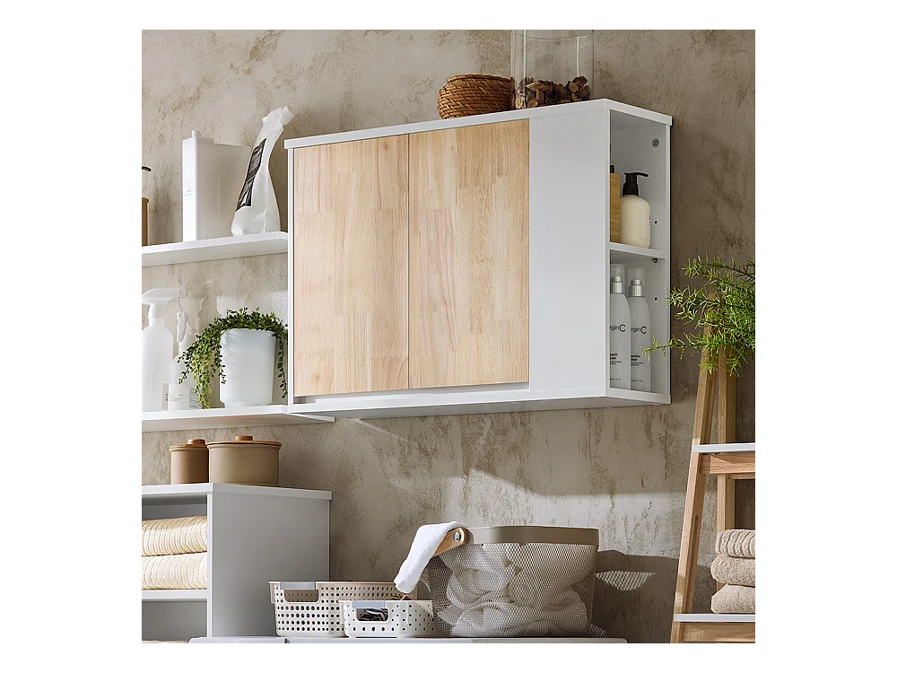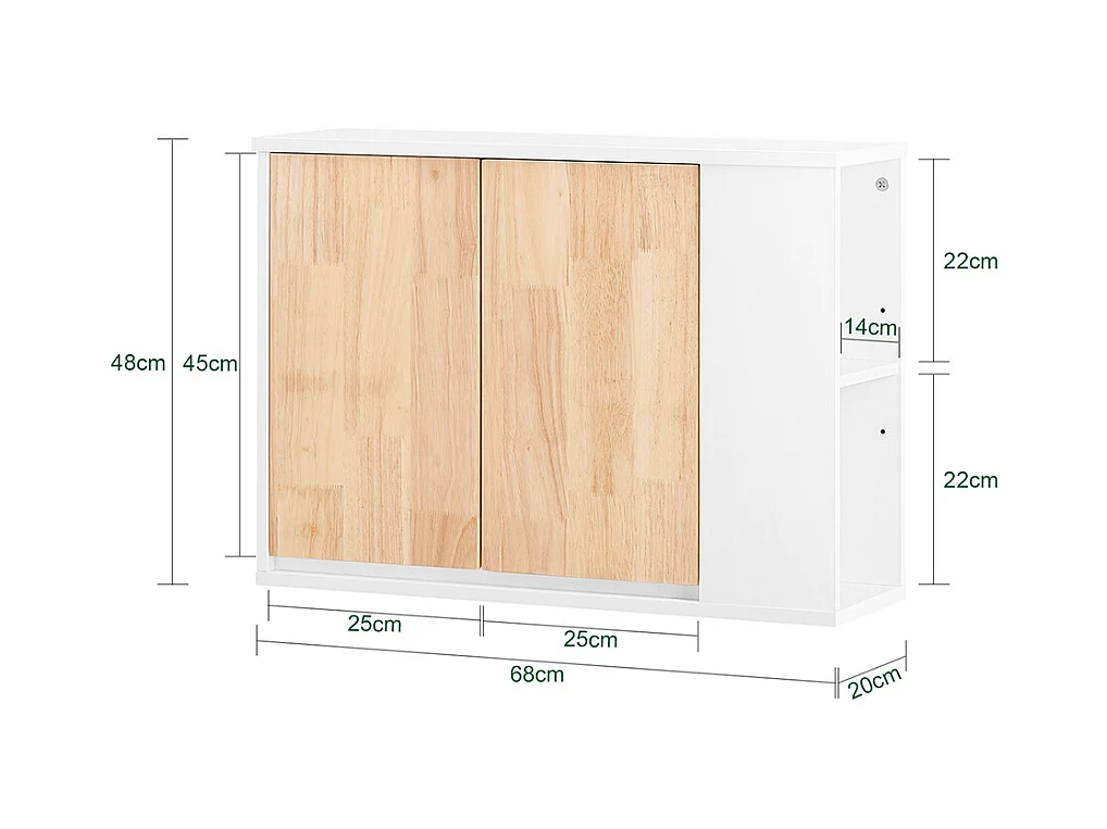 Armario de Pared para Baño Armario de Almacenamiento con 2 Puertas y 2 Compartimentos Abierto Blanco 68 x 20 x 48 cm BZR144-WN SoBuy ES