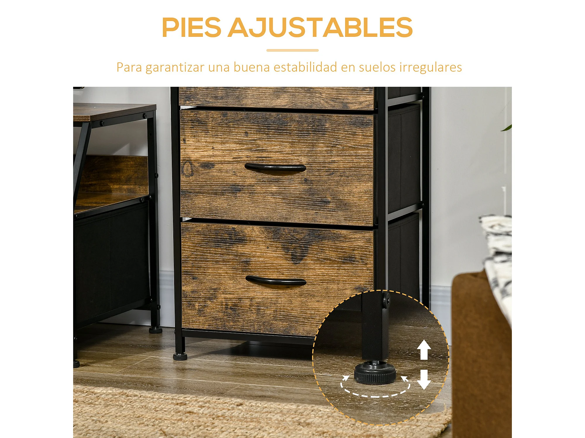 Cómoda Roble Homcom 9 cajones de tela gris 99x100x30 cm