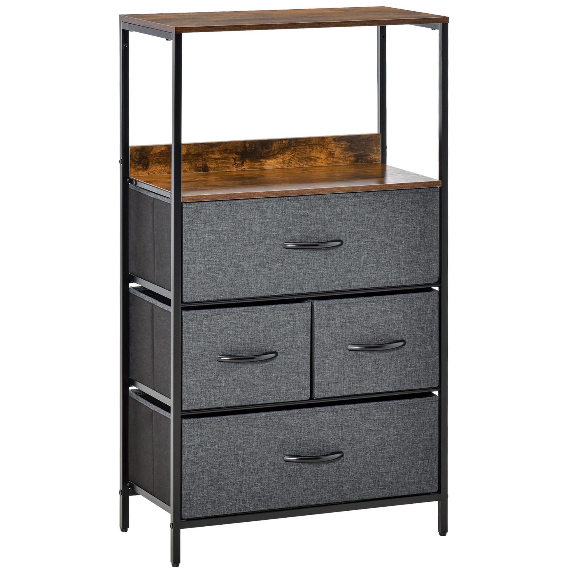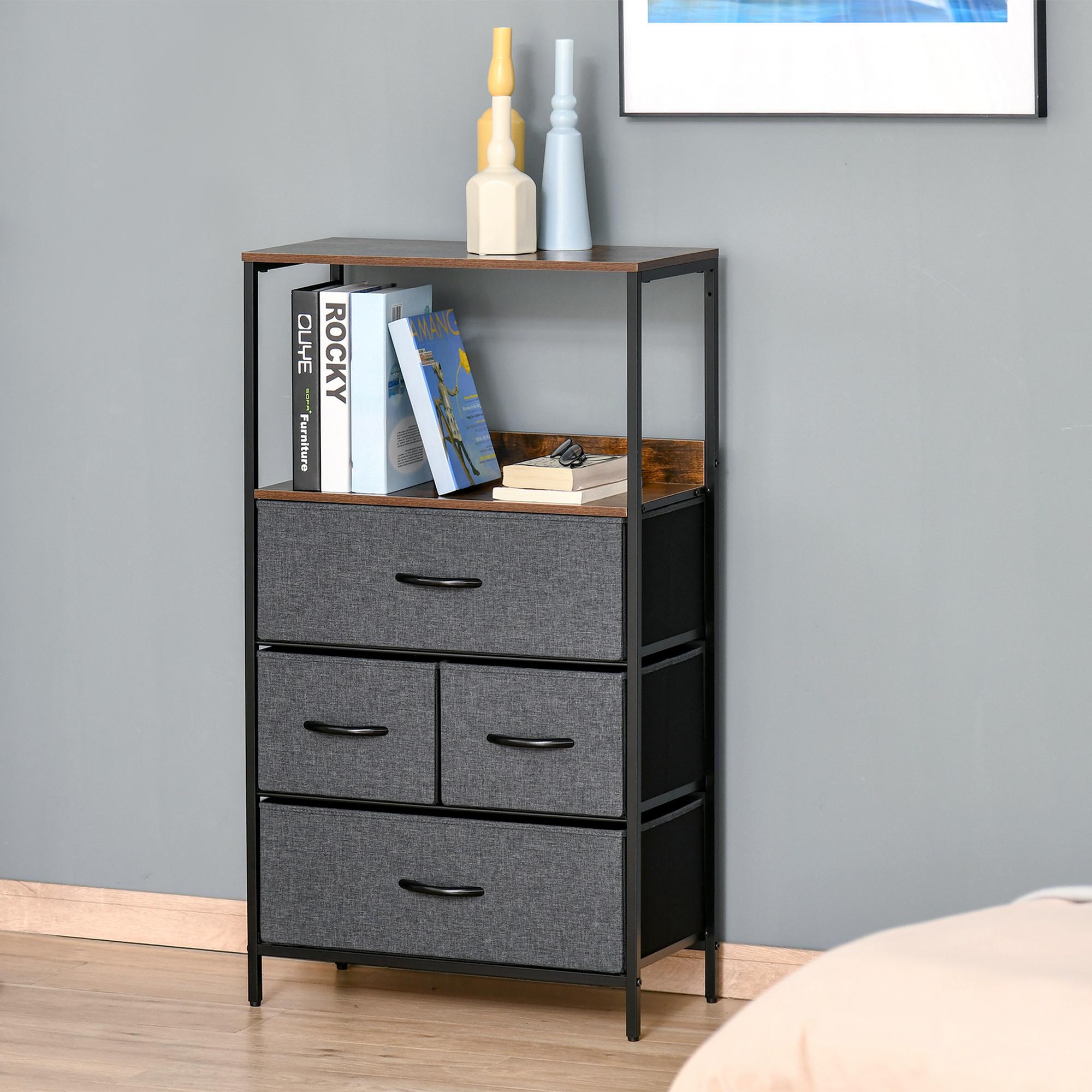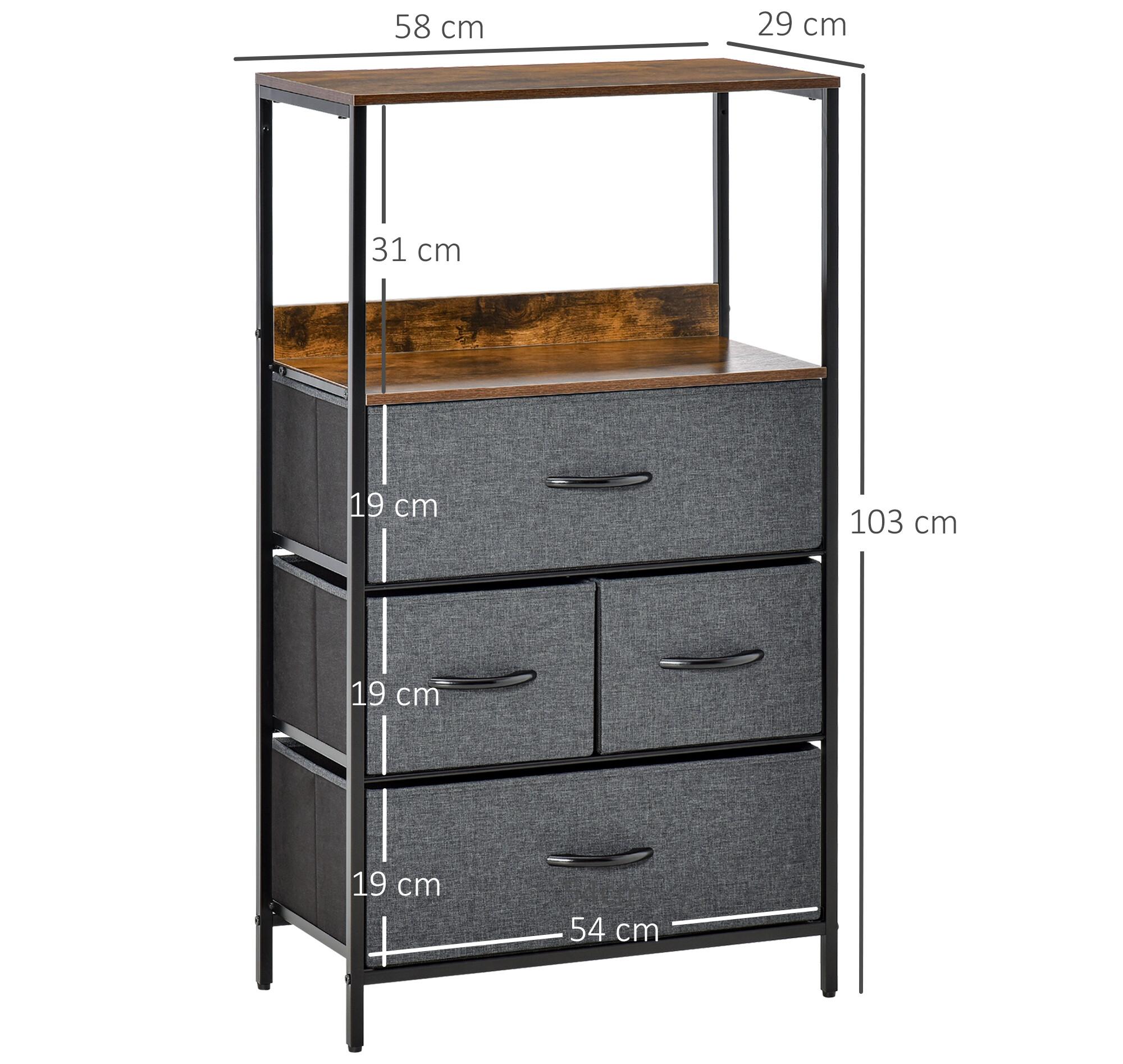 ¿Estás buscando una cajonera bonita y funcional? Este armario multiusos de HOMCOM es la combinación perfecta entre elegancia y ahorro de espacio. Fabricada con una resistente estructura de metal y MDF, cuenta con 4 cajones de tela non woven extraíbles y una amplia encimera y estante abierto para tener tus objetos de decoración expuestos ¡Es la solución perfecta para cualquiera que busque espacio de almacenamiento extra!