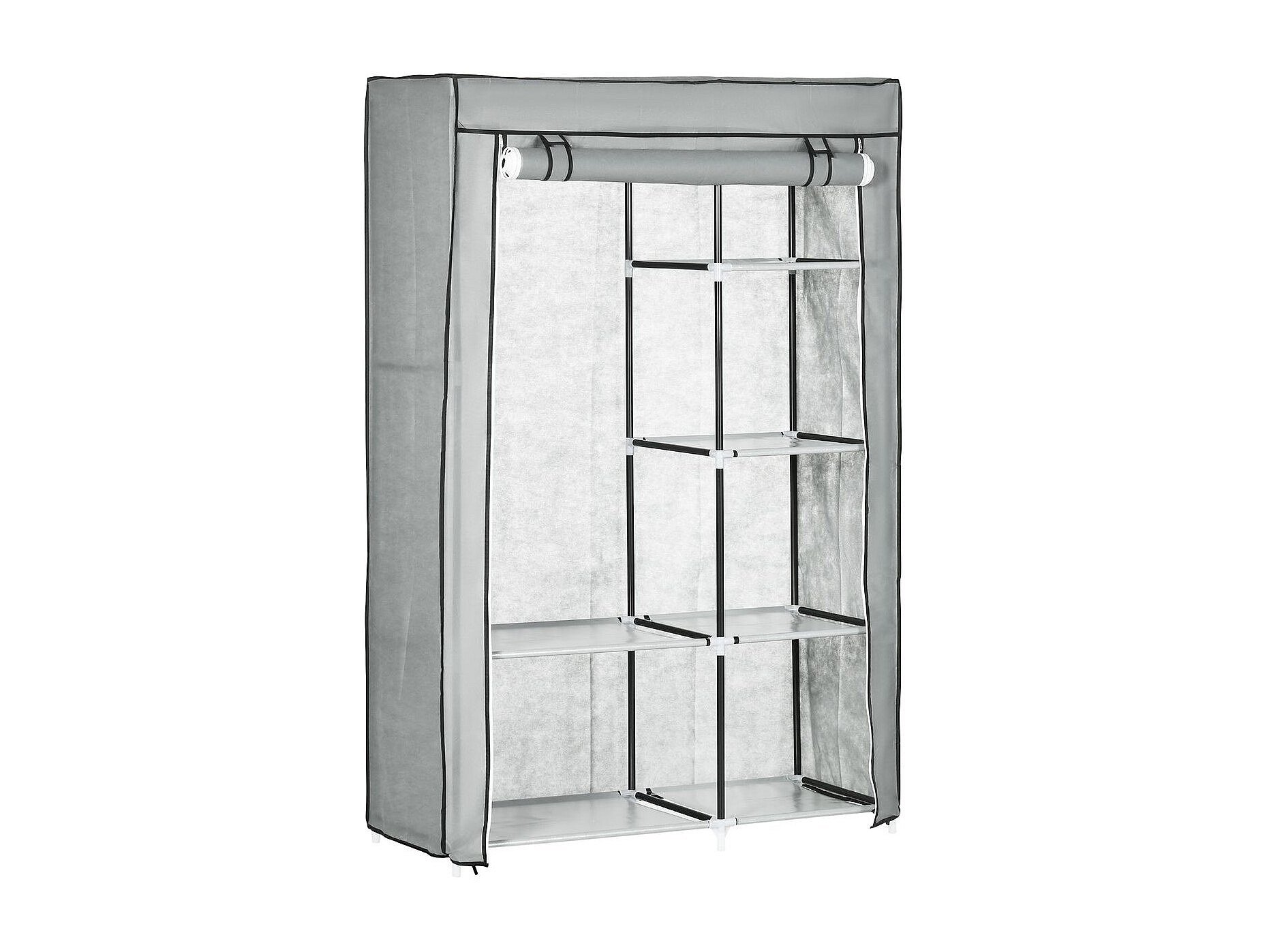 Armario de tela 6 estantes 1 barra para colgar 2 bolsillos gris 170x105x45 cm