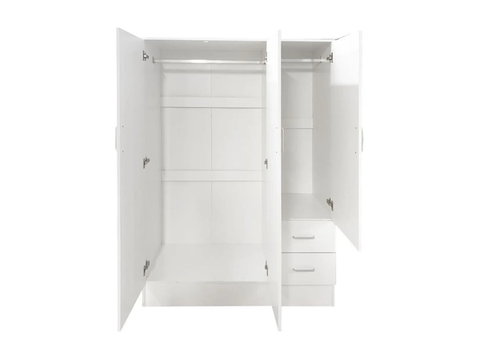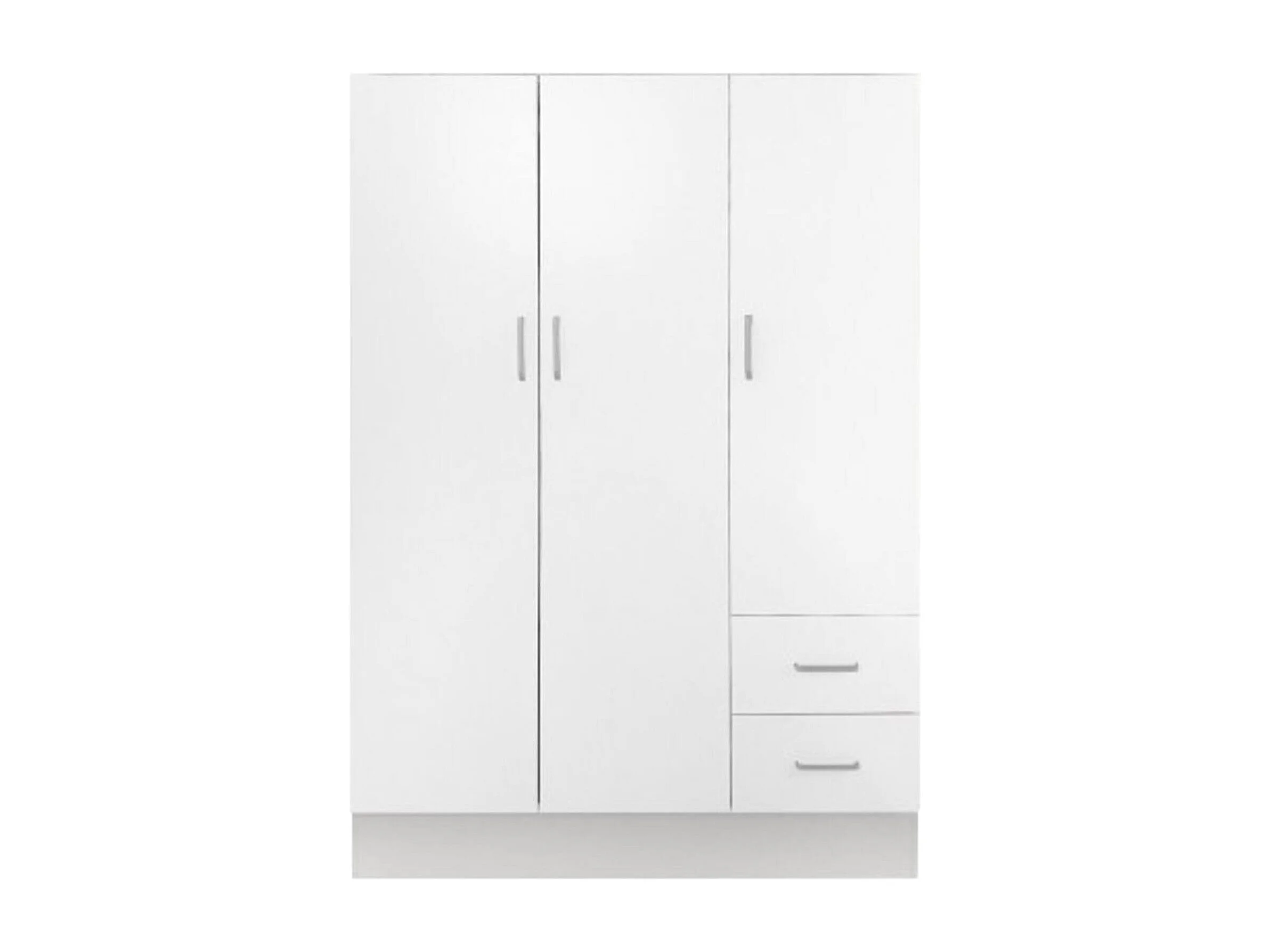 Armario de tres puertas y dos cajones con baldas y perchero, color blanco, Medidas 120 x 170 x 50 cm