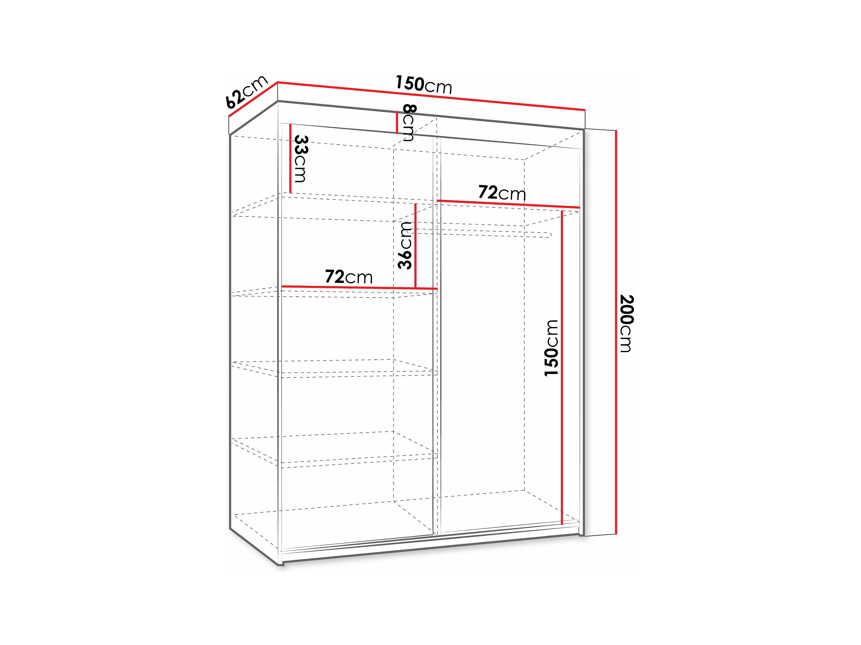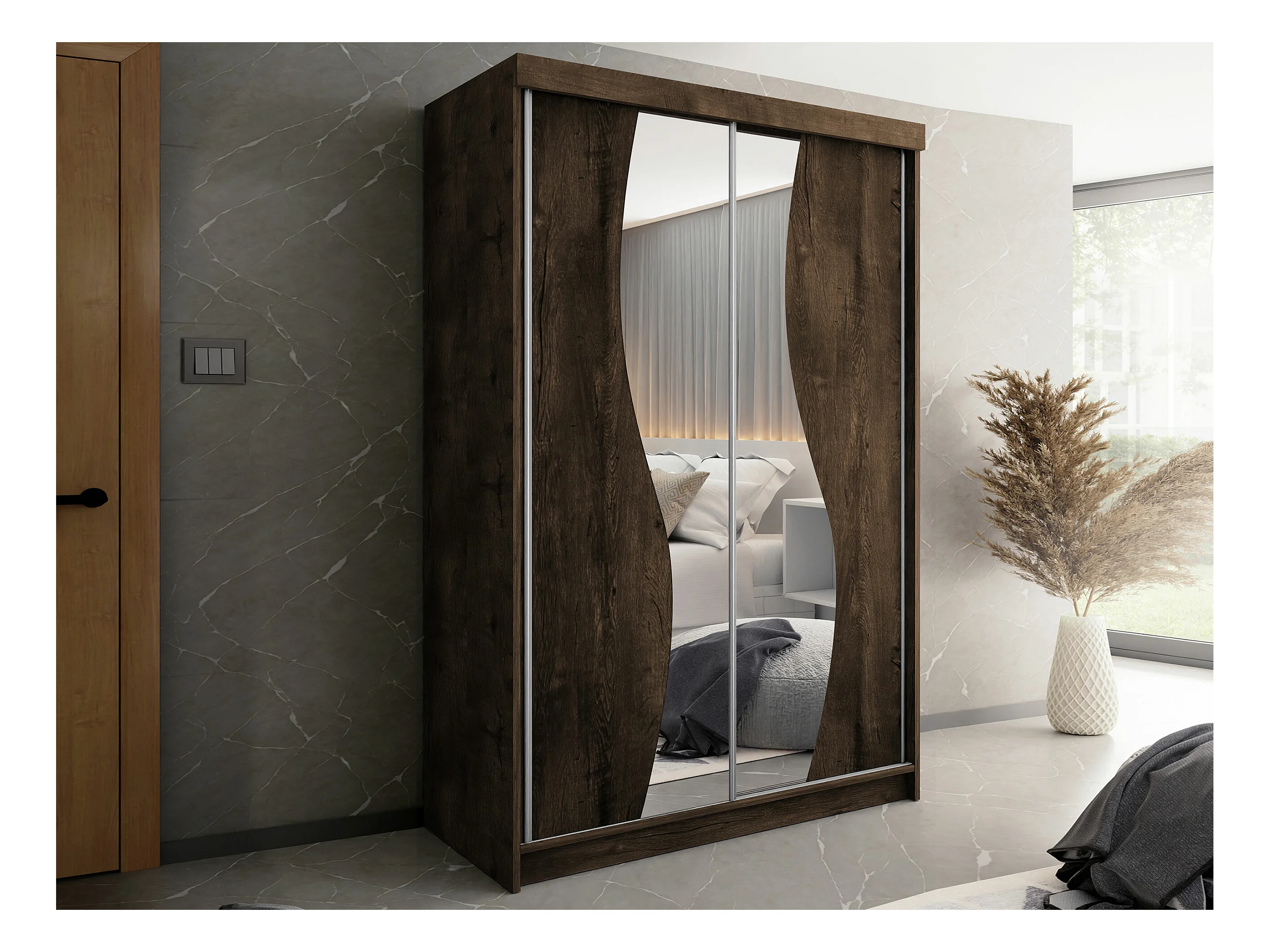 Armario Dover 110, Fresno oscuro, 200x150x62cm, Puertas de armario: Correderas