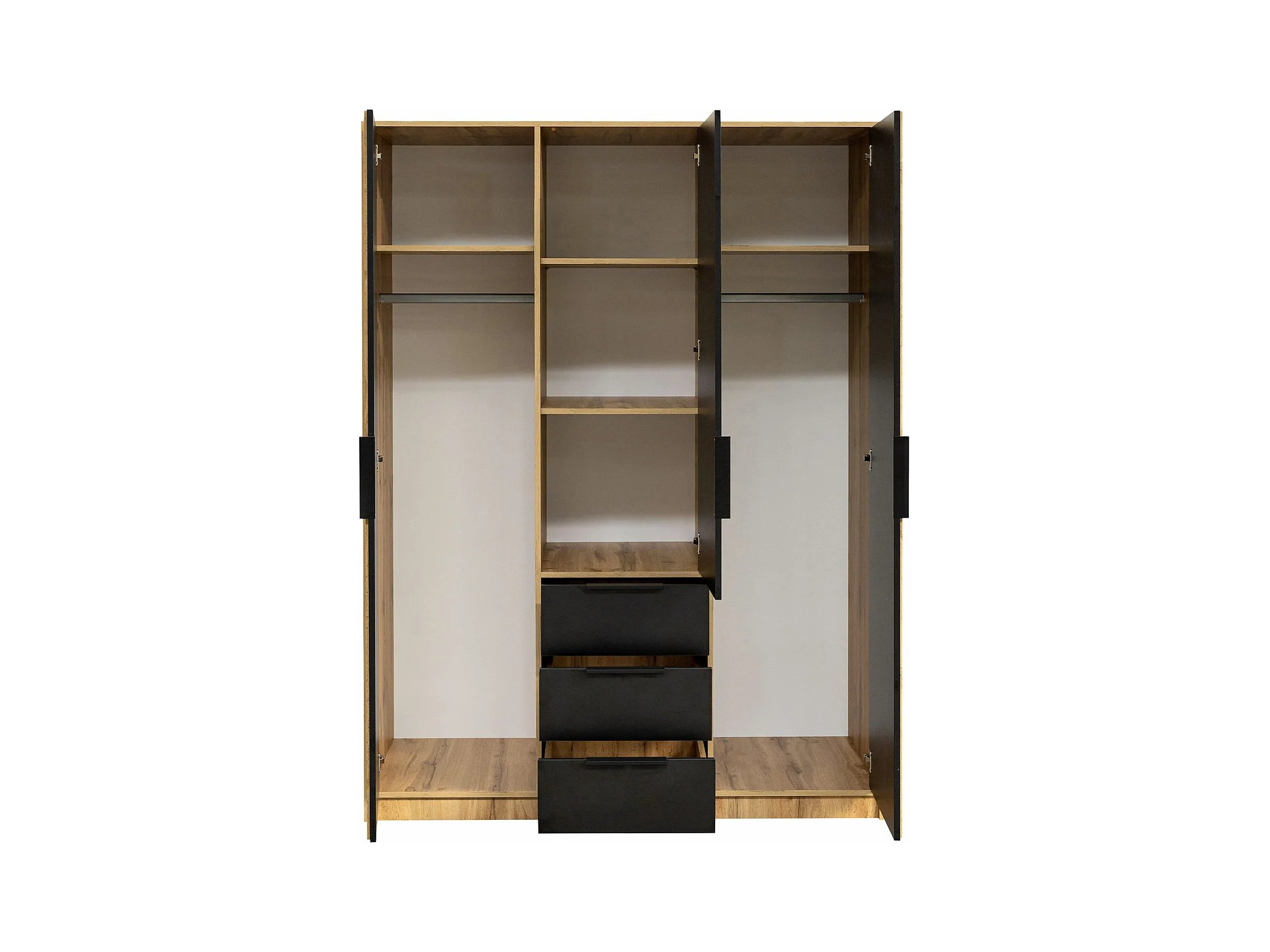 Armario Enolevo 106, Roble wotan|Negro, 200x150x58cm, Puertas de armario: Con bisagras