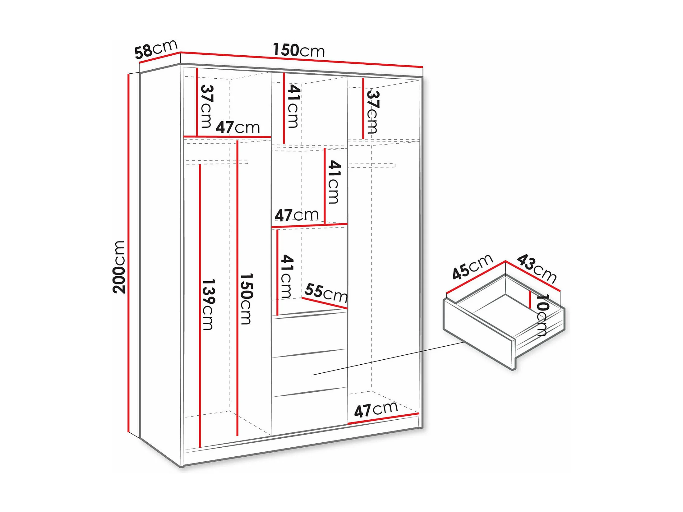 Armario Closico 151, Blanco|Roble Sonoma, 200x120x58cm, Puertas de armario: Correderas