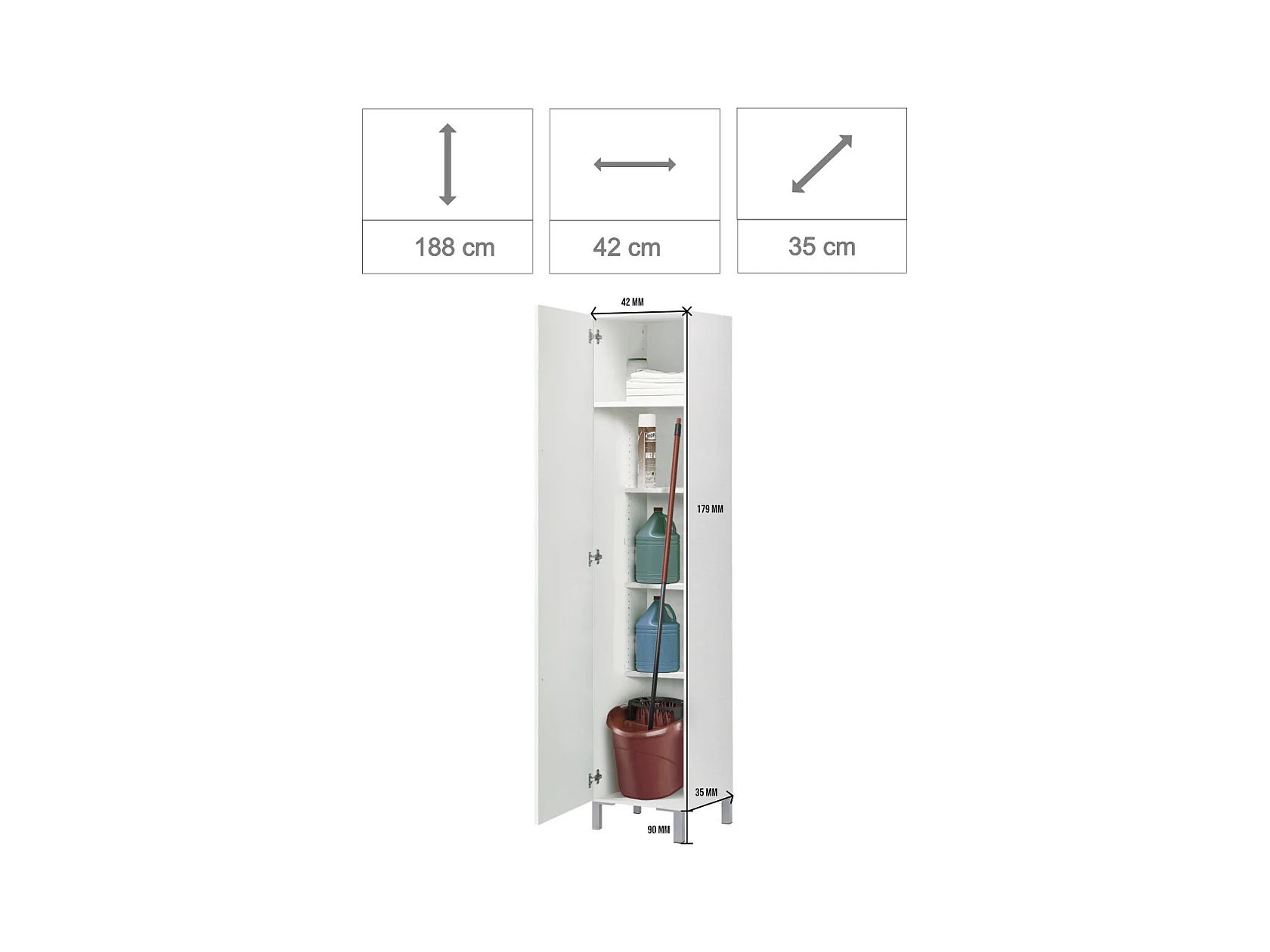 Armario escobero Multiusos de hogar en Color Blanco Alto 188 / Ancho 42 / Fondo 35 - Buyqualia