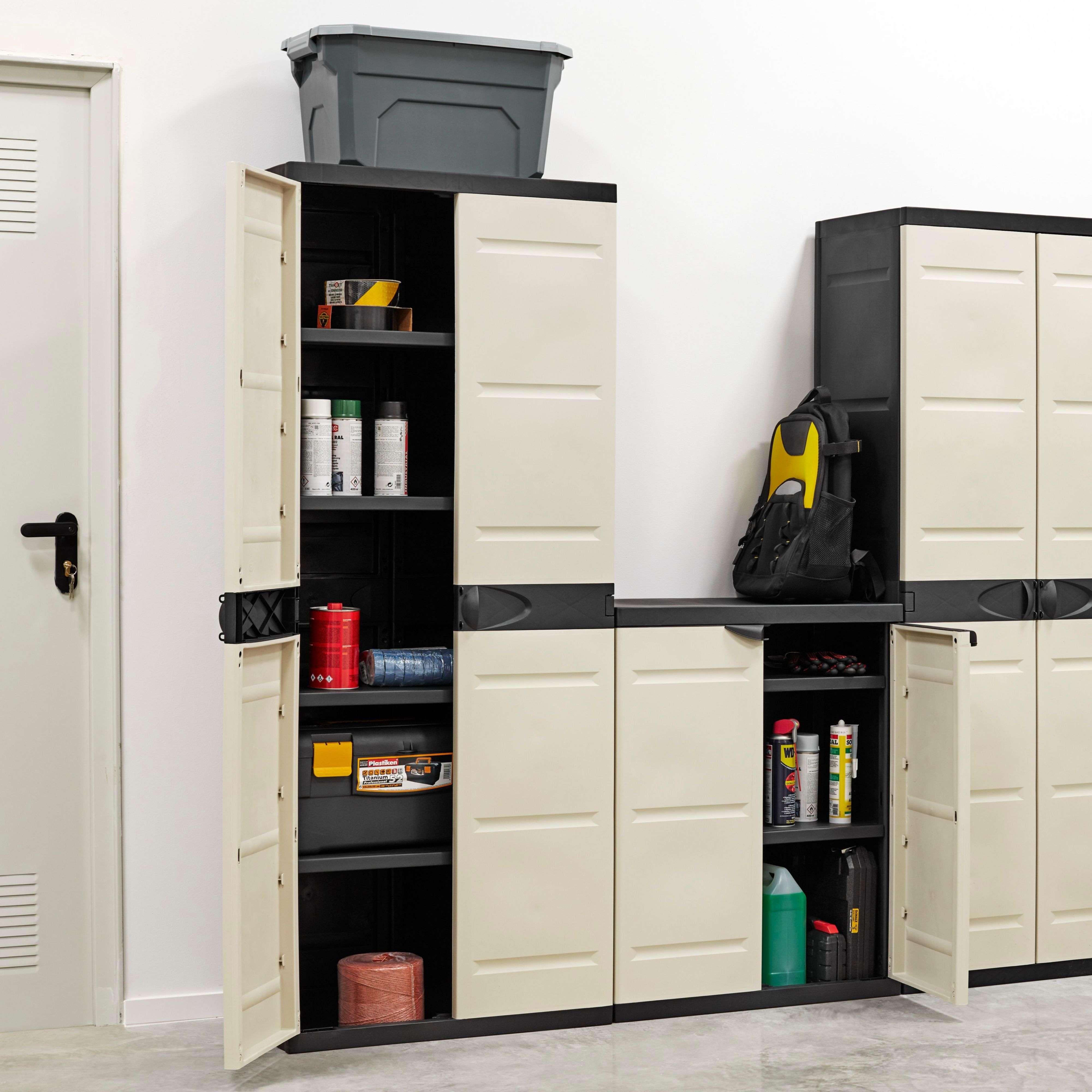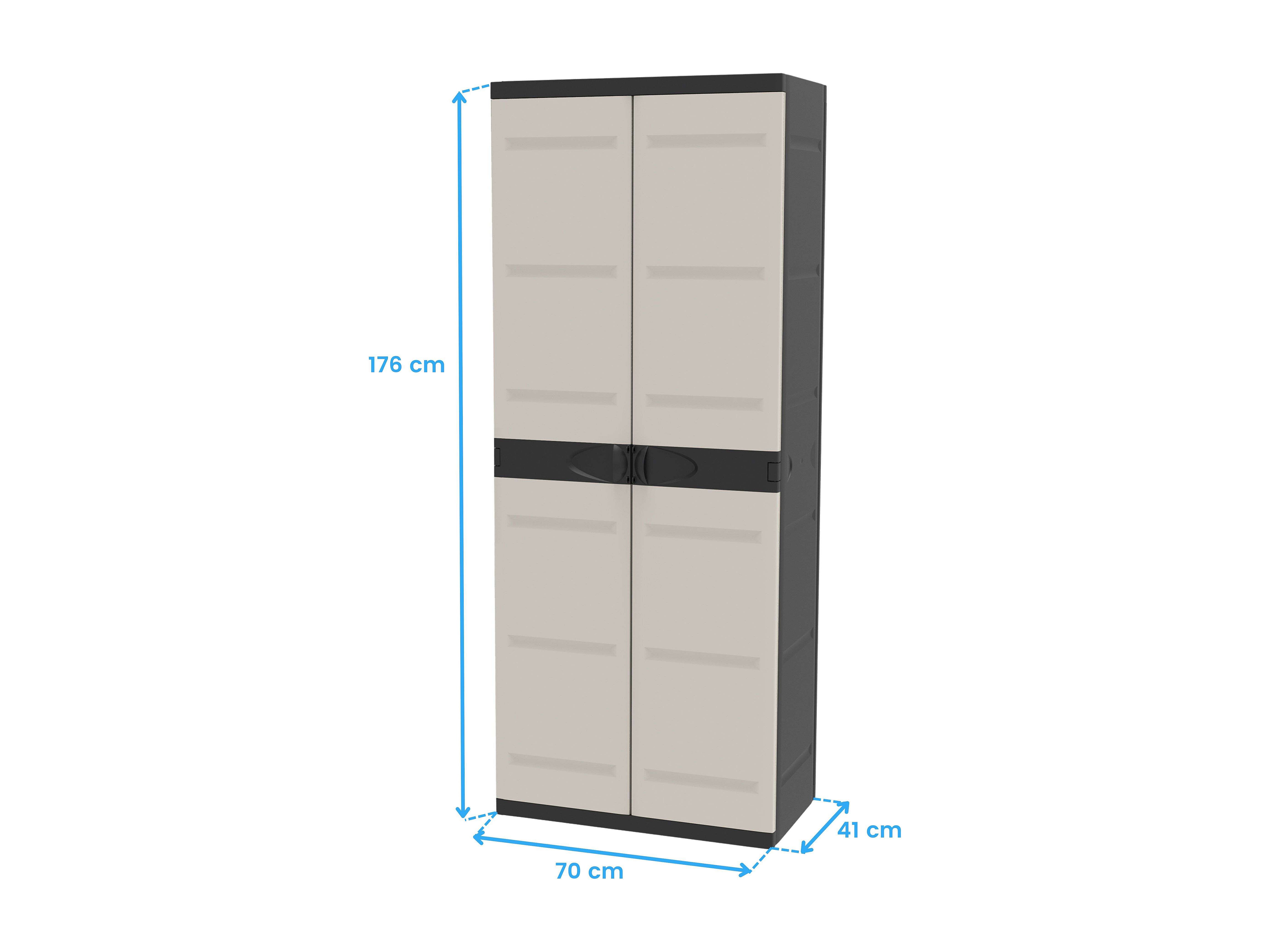 Armario exterior Titanium 2 puertas beige, 4 estantes regulables, resina 70x176x41 cm
